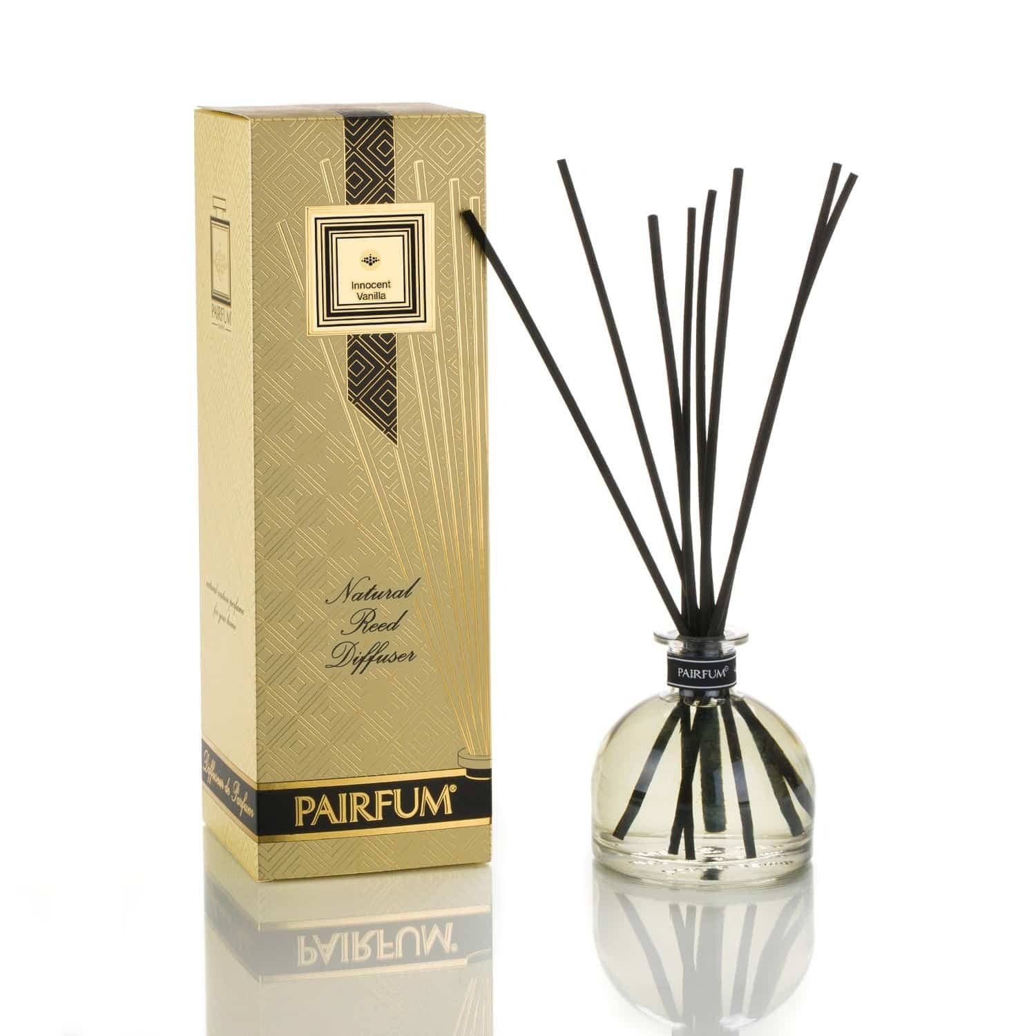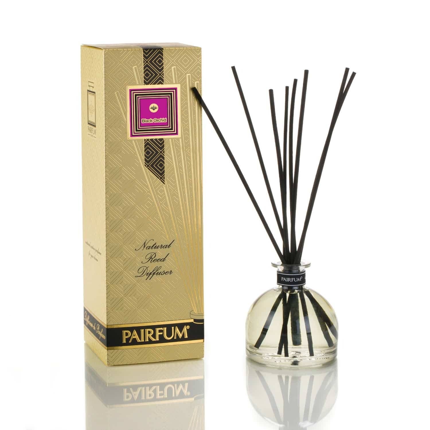 ”Naturlig & hälsosam vas diffusor. att öppna och visa denna vassdiffusor i ditt rum kommer att kännas som om du just uppgraderat till en ”Eau de parfum”: det ger ditt hem en naturlig och sinnlig couture parfym. Pairfum inbjuder dig att lägga till en touch av kärleksfull elegans till världen i ditt hem: Dofter med naturliga eller ekologiska eteriska oljor som är hälsosamma att leva med för dig, din familj och miljön. En vackert naturlig couture parfym för ditt rum. 100 Ml av det koncentrerade parfymoljeserumet kommer praktfullt dofta ditt hem i 3 - 5 månader (ja, detta är förvånande men de är faktiskt mycket längre än de flesta). Vi erbjuder dig ett stort utbud av underbart olika doftoljor för dig att välja mellan. Njut av att välja din perfekta parfym. 10 X naturliga, extra långa och starka svarta vass gör denna vassdiffusor lämplig för stora rum. Reglera doftintensiteten och livslängden efter din smak genom att använda mer eller färre vass.