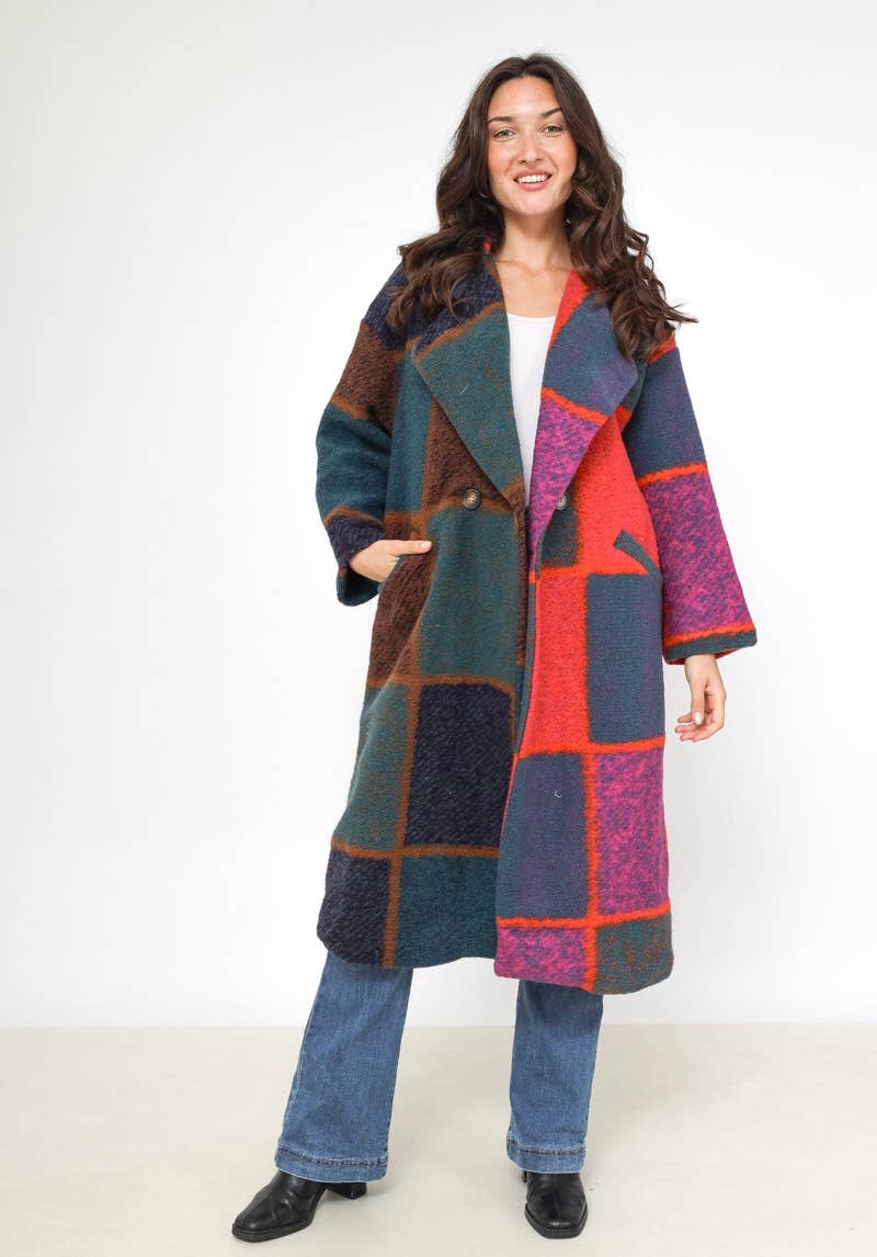 Enfärgad lång kappa i ull 99320 20% Polyester - 80% Ull