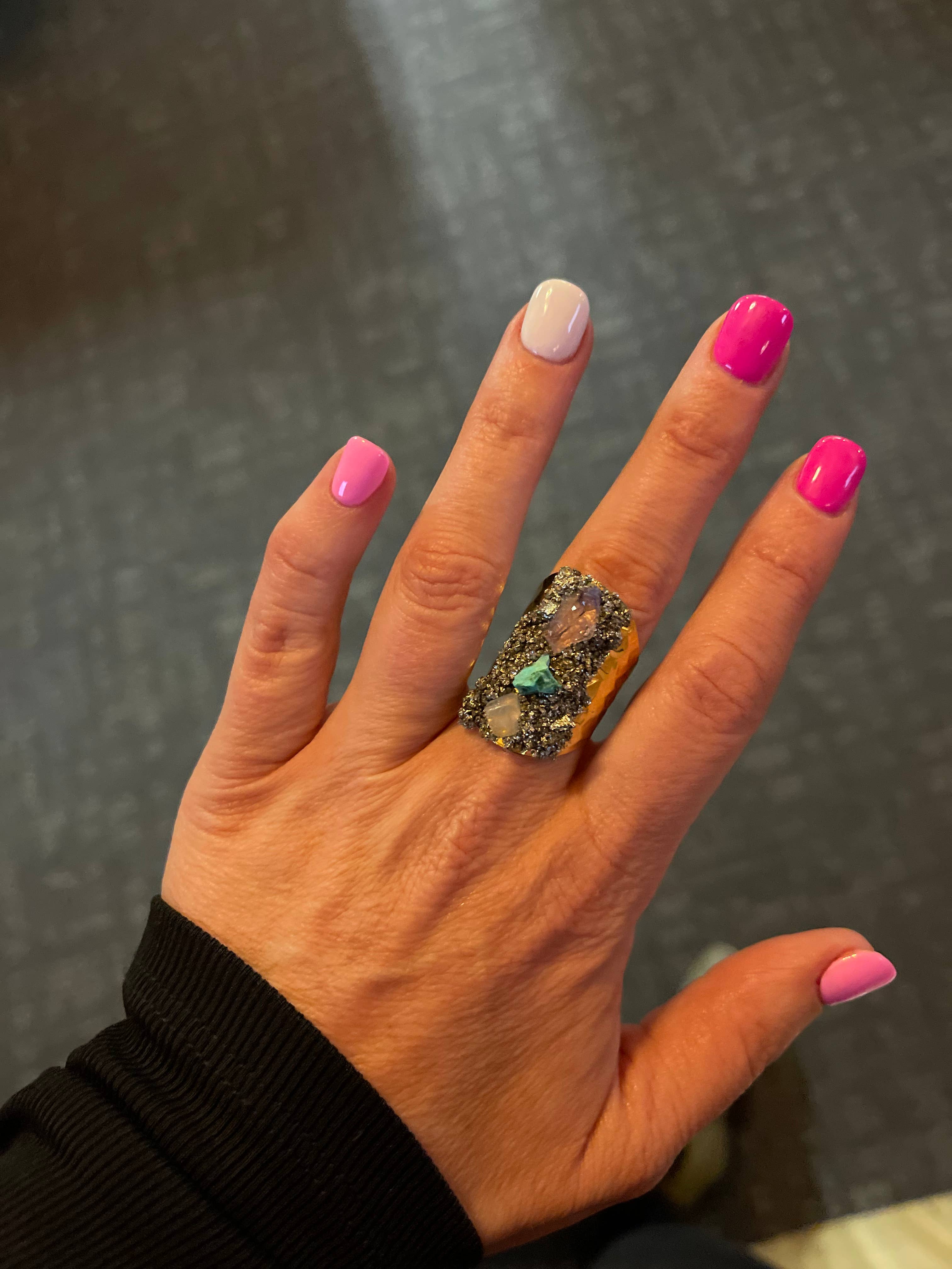 Smycke | Statementring med tri-färgade ädelstenar i 14k guld