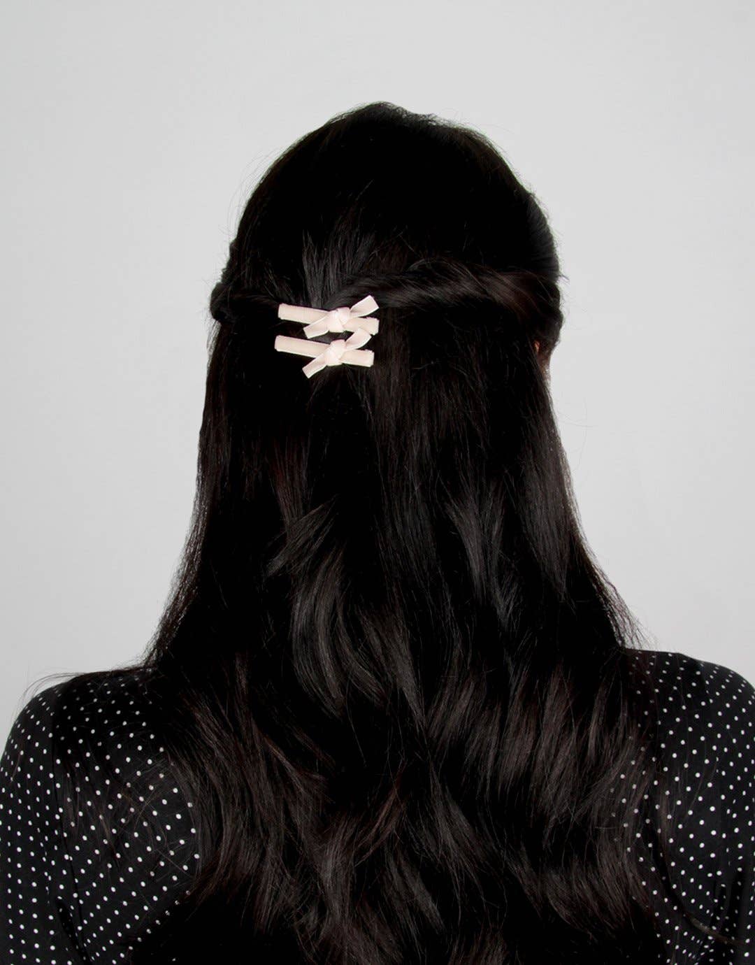 Våra Velvet omfattas Alligator Clips är bra för alla hårtyper; Sammet knutna båge täcker silver klipp. Nu i Petite och STANDARD. Petite: 6 pack; 2 klipp per färg. STANDARD: 4-pack; 2 klipp per färg