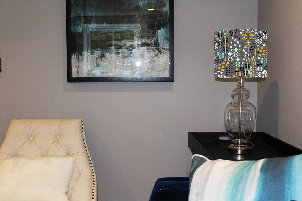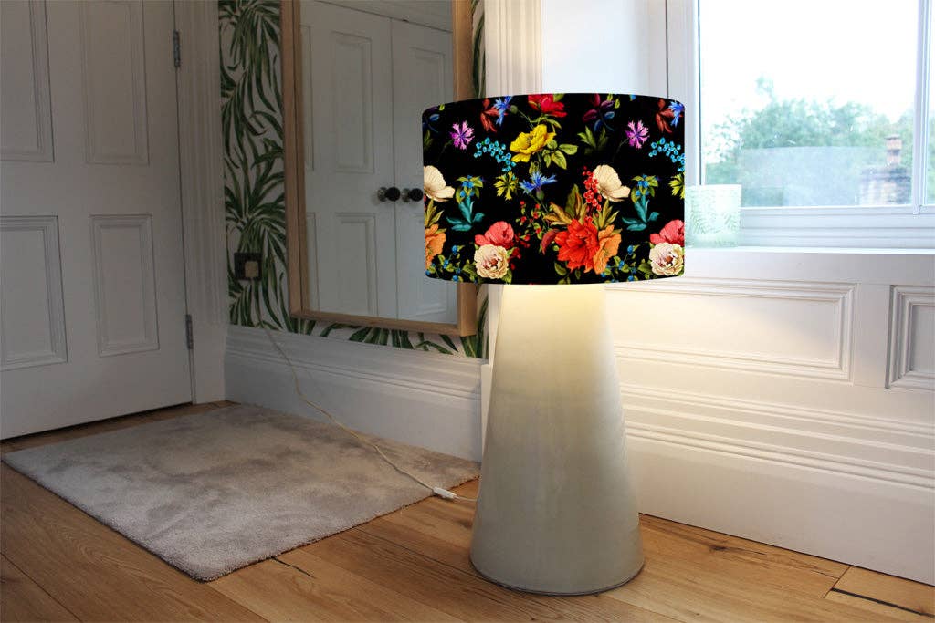 För användning som antingen tak eller lampskärm Justerbara tillbehör ingår - passar standard bajonettlock (BC) Lampa/tak, hållare Bomullsmaterial Vibrant bläckteknik In-Trend Designerkonst Handgjorda i Storbritannien
