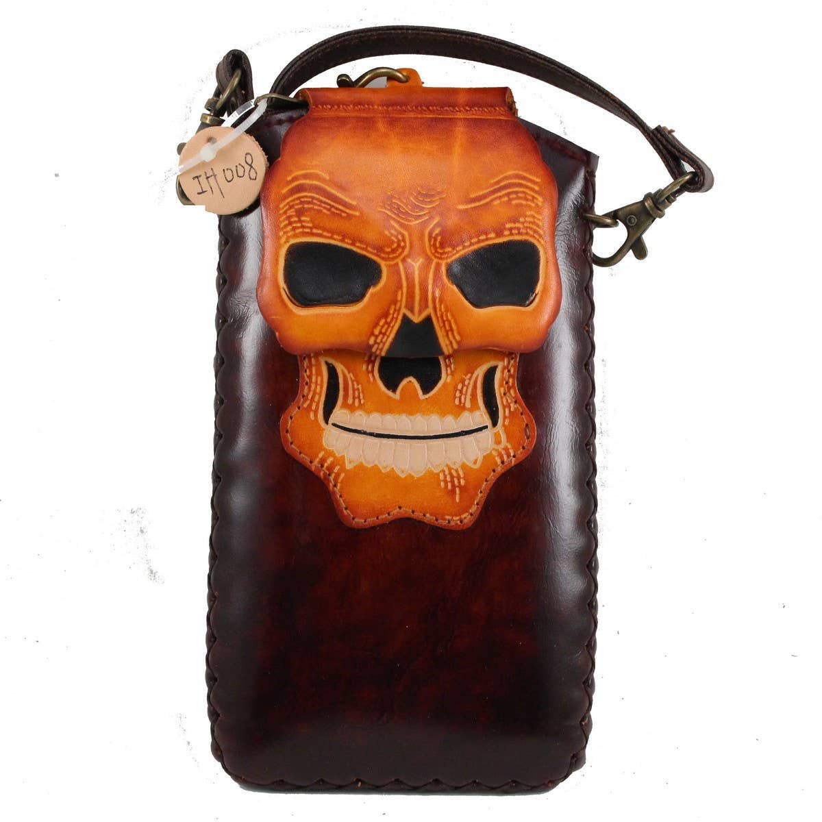 Ih024 sköldpaddsmobilfodral. Detta söta mobilfodral i äkta läder är färgat, målat, format och sytt för hand. Detta mobilfodral har en axelrem som är instoppad för visningsbilden och har en handledsrem om du vill ta bort axelremmen. Huvudet på detta fodral fälls upp med en magnetknapp. Det är perfekt för vandring och promenader. Avtagbar och justerbar "PU" läderrem är cirka 62 tum lång. Storlek: 4"x7". Passar de flesta nyaste telefoner.