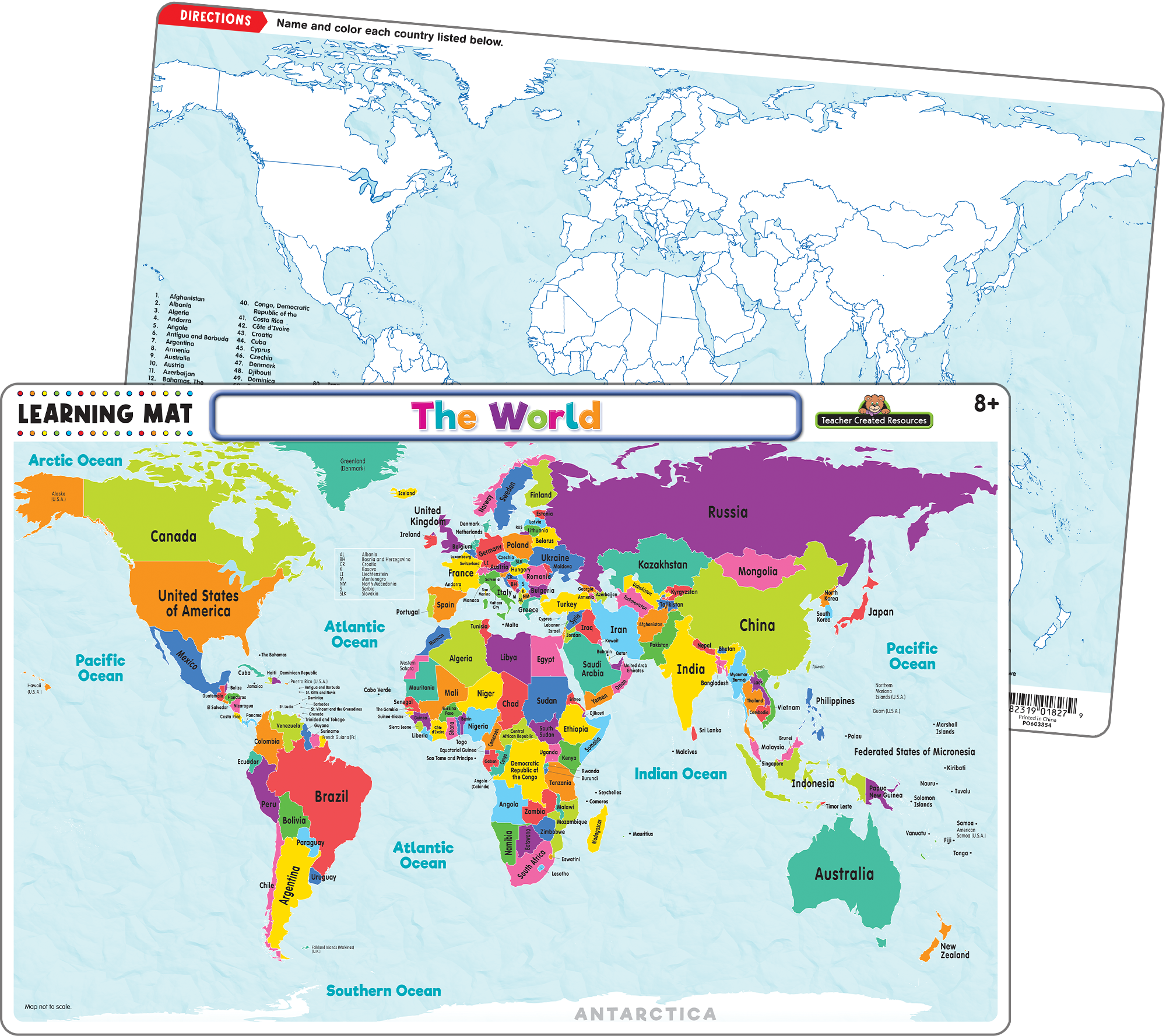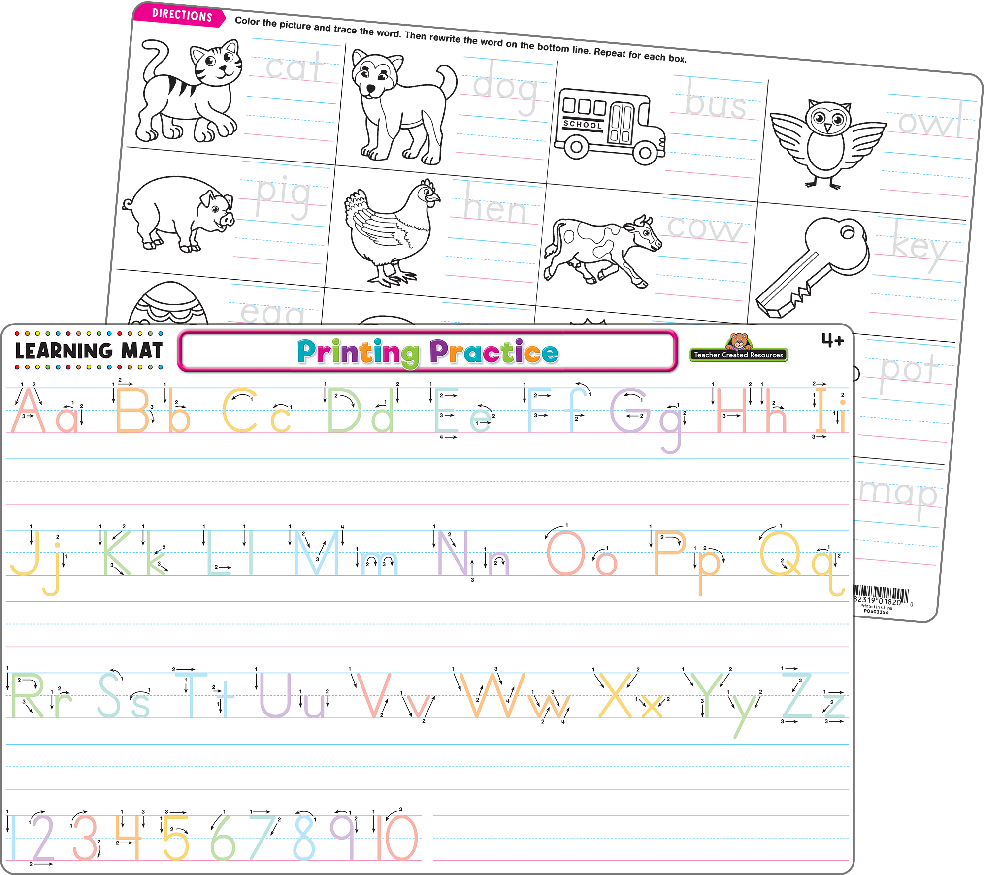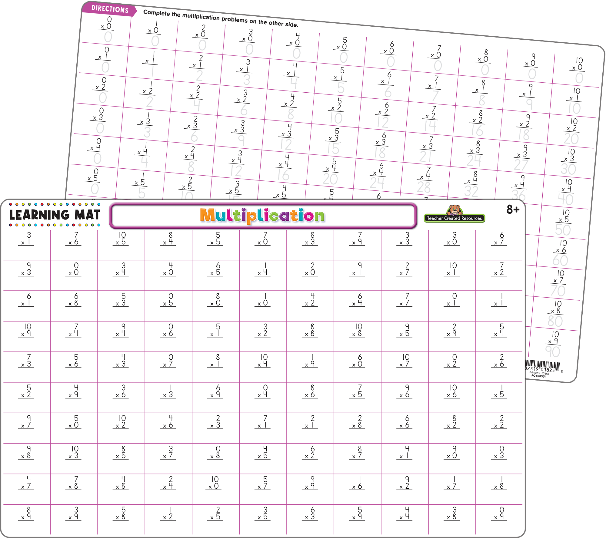 Dessa slitstarka torraderingsmattor ger oändliga timmar av lärande och övning av viktiga färdigheter. Barn kommer att älska att använda dessa mattor för att lära sig och öva stavning, matematik, tidsberäkning, geografi och mer. Och när de är klara med att skapa sin egen personliga matta kan de torka av den och göra det igen, vilket ytterligare genomför viktiga koncept. Perfekt för hemma, för en rolig måltidsaktivitet, eller ta dem på språng för att använda i bilen eller medan du äter ute. Använd med Teacher Created Resource Colorful Dry-Erase Crayons (ingår ej) för att skapa din egen unika matta. BPA-fri - Dubbelsidig - Torradering - Rundade hörn - Använd med torrraderade kritor. Använd inte med vanliga kritor, markörer eller torraderingsmarkörer. Använd en fuktig pappershandduk eller trasa för att rengöra torrraderade kritor. Learning Mats kan rengöras helt med desinficerande våtservetter eller med tvål, varmt vatten och en icke-slipande svamp. Låt torka helt innan återanvändning. Produktmått: Ca. 17-1/4 ”x 11-1/8" UPC: 882319018323