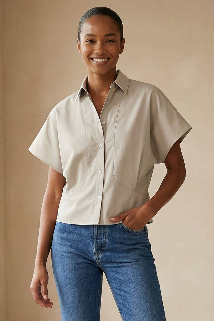 Blus med uppkavlade ärmar och knappar