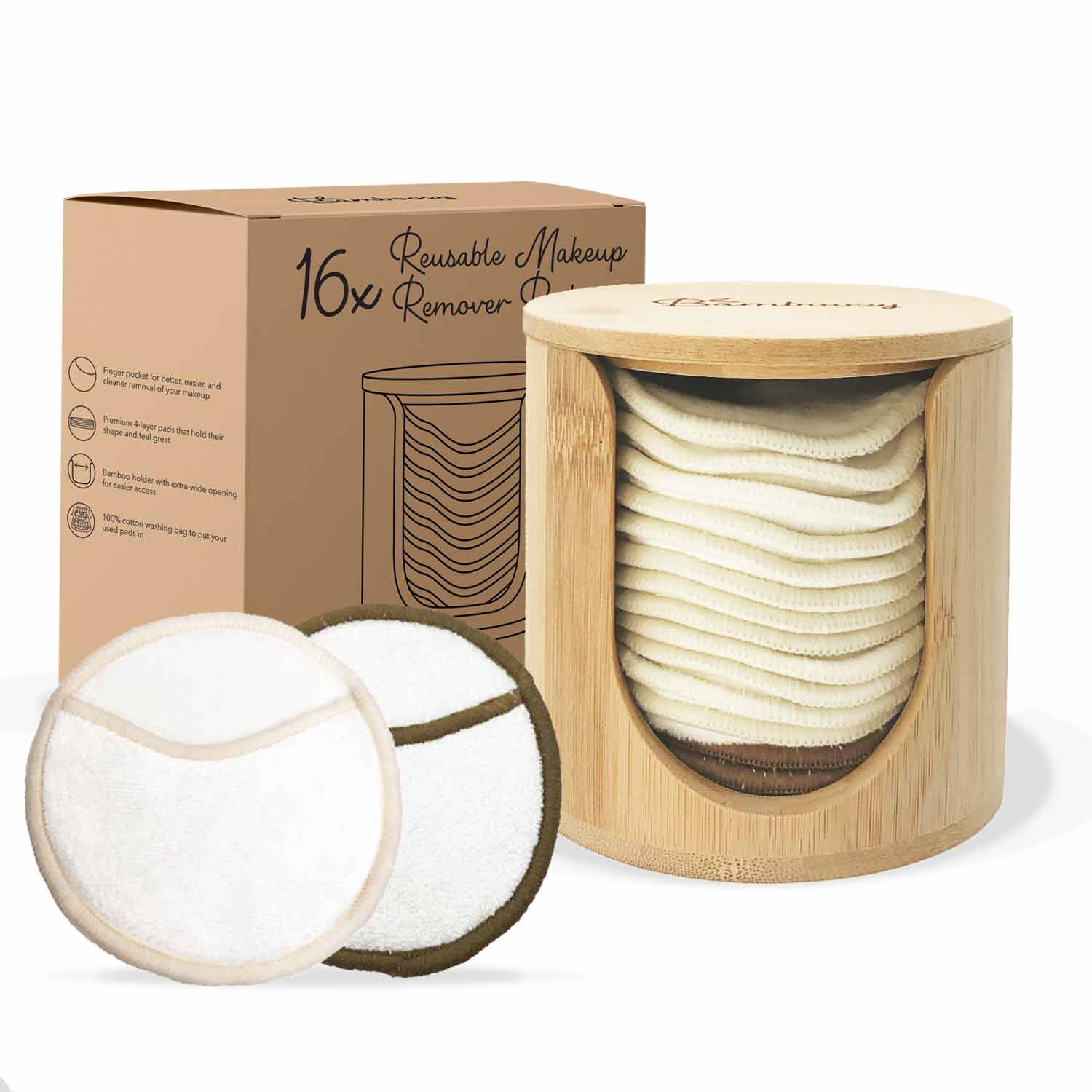 Originalet och välkända hållaren i bambu finns nu även att köpa separat, med marknadens högsta kvalitet på finish. Vacker bambuhållare för förvaring av dina tvättbara bomullsrondeller. Med extra stor öppning för lätt åtkomst till dina återanvändbara bomullsrondeller. ✔ Förbättrad version, lämplig för fuktiga miljöer ✔ 100 % bambu ✔ Vacker i badrummet ✔ Med lock ✔ Extra hög för att du alltid ska kunna förvara fler bomullsrondeller senare Förnyad version Vår uppdaterade bambuhållare har genomgått en högkvalitativ ytbehandling som gör den lämplig för fuktiga utrymmen. Andra bambuhållare är ofta naturliga och endast anpassade för torra rum. Dessutom ser den ännu vackrare ut i ditt badrum och färgen matchar bättre vår bambuhållare för bomullsrondeller.