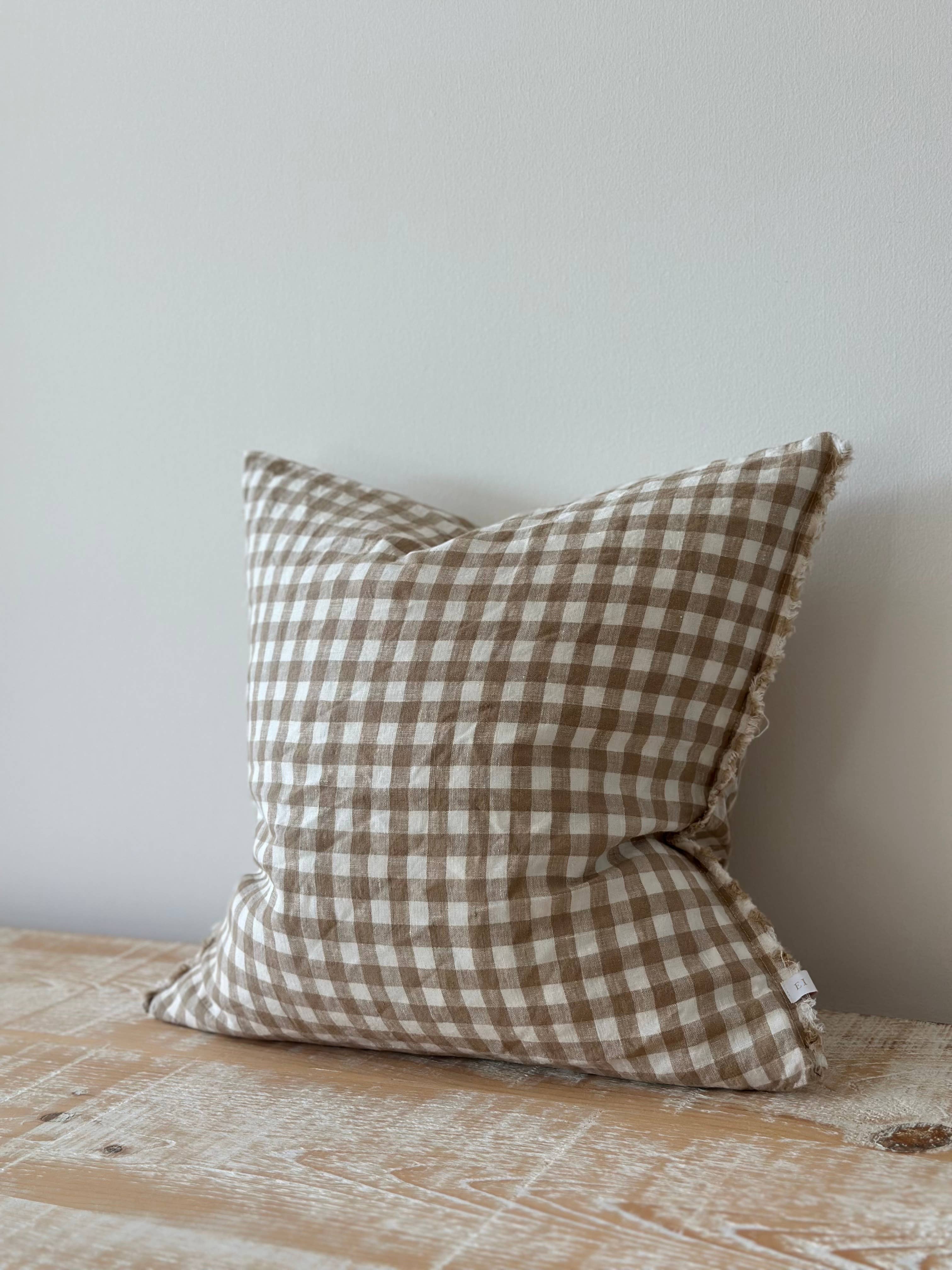 Hallie Ruffled Linne Kuddfodral - Kaffebrun