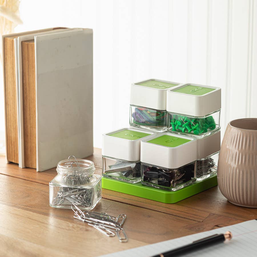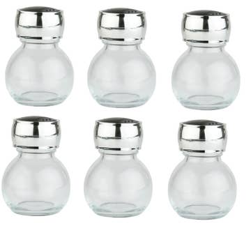 Orii 3oz rak cylinder verktyg lagringsburk/krydda burk medâ lock av rostfritt stål, bra för förvaring av kryddor och knick-knacks. Accentlock i rostfritt stål med en inre shaker topp, skruva loss locket och skaka. Kraftig glaskonstruktion. Lätt att fylla på. 5 x kryddburkar. Produktens dimensioner: enkel burk: 1,75" x 1,75" x 3,75".