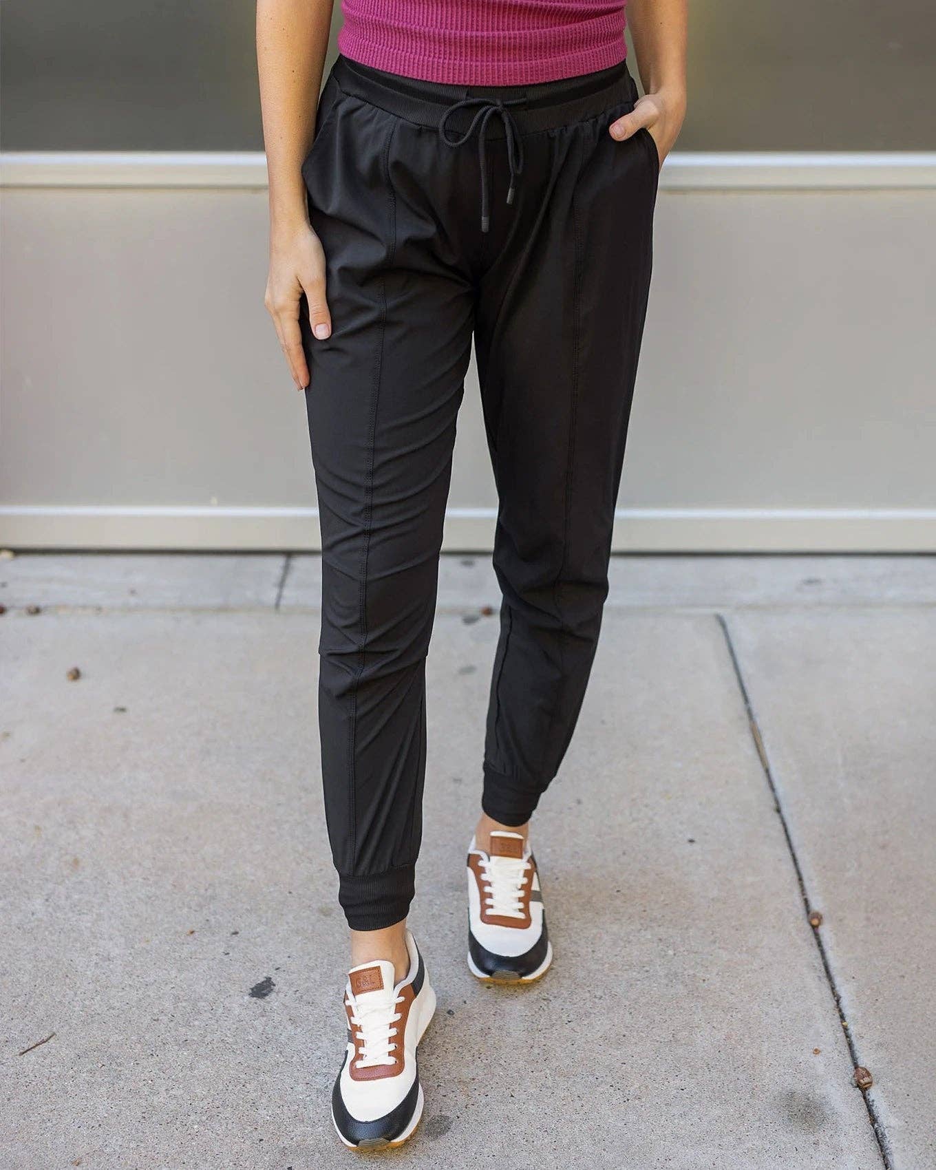 Rek. pris: $48,00 Kanadensiskt rek. pris: $74,52 Svart lätt jacka Aktivera din stil med den nya G&L Active Track Jacket! Denna lätta träningsjacka är redo att bli din nya favorit oavsett om du är på väg till gymmet, tar en tur på stigen eller som ett extra modernt lager för din vardagslook. Tillverkad med vårt nya lätta blandade materialtyg (tänk vindjacka-stil), har denna svarta träningsjacka genomtänkta designdetaljer för att hålla din look smickrande och bekväm. Använd som ett praktiskt extra lager eller kombinera med våra G&L Active Jogger Pants som ett matchande set! Varför du kommer att älska dem: * Lätt, atletisk, svart träningsjacka med dragkedja * Smickrande designdetaljer som högre krage, bred huva som ligger platt och invändig justerbar midjesnörning för en anpassad passform * Funktionella öppna sidofickor och dolda invändiga telefonfickor * Styla denna löparjacka med dina favorit atletiska eller athleisure-looks, eller kombinera som ett matchande set med G&L Active Jogger Pants för ett wow-träningsögonblick!
