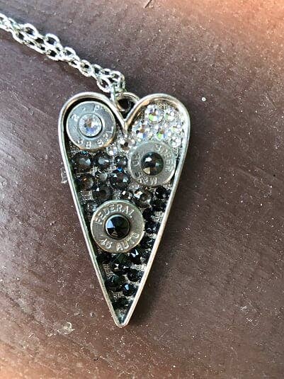 Silverpläterad mässing. Detta är ett hjärta hängsmycke och accentueras med Swarovski kristaller och flera kulor. Hängsmycke Storlek är 2" lång och 1" bred, Halsbandet är 24" in Längd På grund av arten av detta handgjorda halsband, varumärke av kula, storlek och exakt Placering av kulor eller kristaller kan skilja sig från bilden.