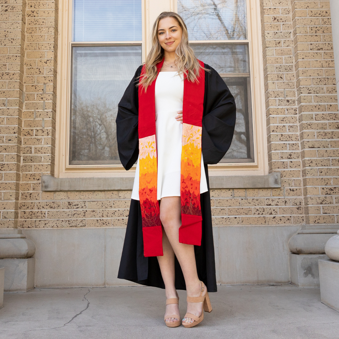 Vår miljövänliga kontorsstol (graderingsstol) är tillverkad av återvunna och återanvända tygrester och har en V-ringning som ligger platt på ryggen för en bekväm passform. Den är accentuerad med gyllene tråd och backas upp av kompletterande enfärgat tyg. Våra stolar är verkligen vackra, invecklade och kreativa konstverk! Handgjord och rättvis handel, denna stol gör ett kraftfullt uttalande. * 50 ”L x 5" W 1 * 100% återvunnet tyg * 100% bomull * Färger: Röd/Rainbow
