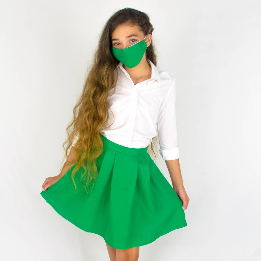 En 50-talsstil twirl kjol med en 80-talspunk twist. Denna lilla kjol är alla tjejer och helt enkelt roligt. Para ihop den med vår volanghalsstickade topp eller en av våra tee (som bilden) och hon kommer att rocka hela dagen lång. Stickad trim: 95% bomull, 5% jersey elastan. Vävd: 100% bomull. Tillverkad i USA.