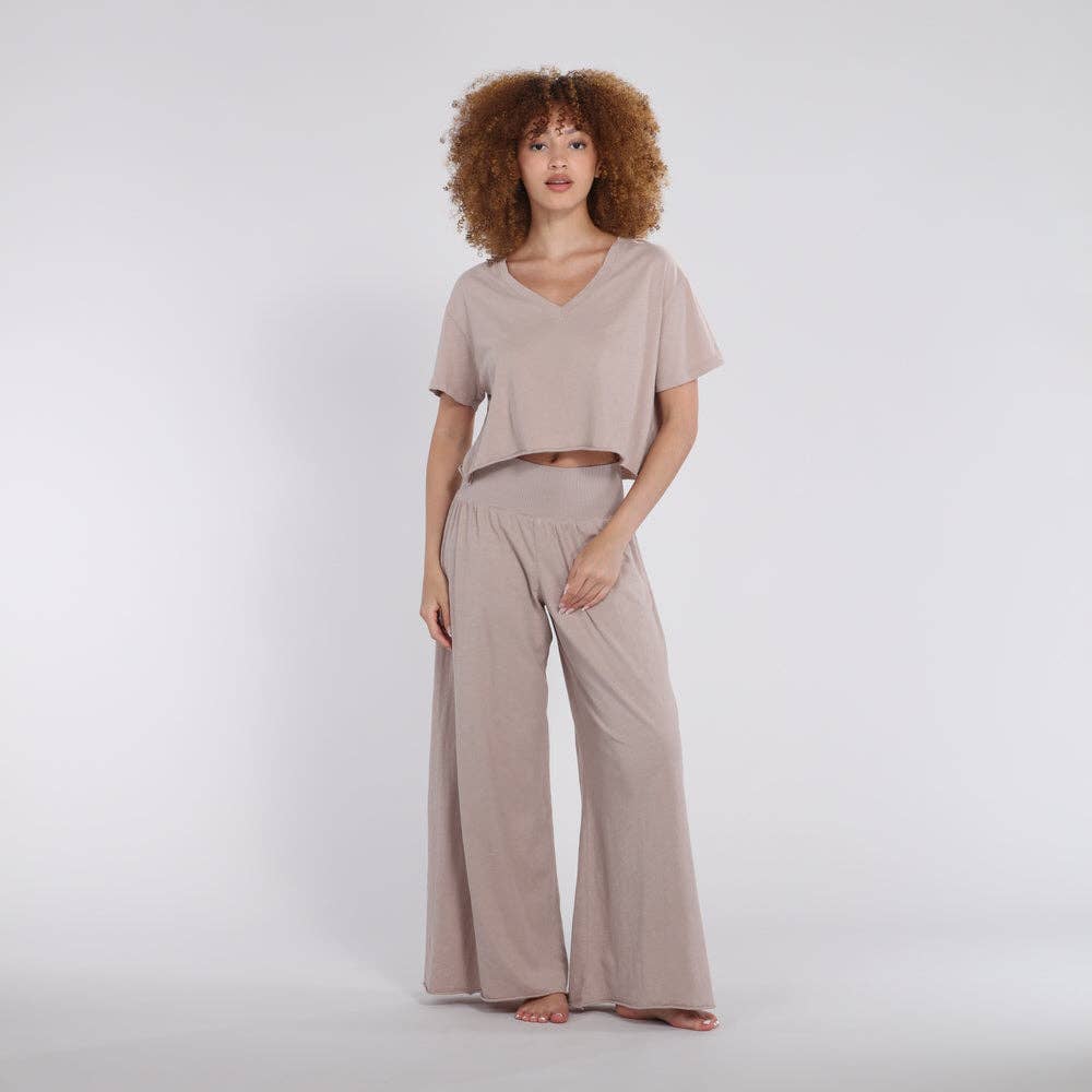 Avbildad med topp (säljs separat) * 100% Supima Jersey bomullskropp. * 90% bomull och 10% spandex midjeband. * Avslappnad genom benet med en subtil utvidgning. * 29,5" innerbenslängd med rå kant, kan klippas till önskad längd. * Stolt tillverkad för kvinnor av en kvinna. * Lätt att klä upp eller ner. * Tillverkad i USA. * Maskintvätt kallt separat, torktumla på låg värme. Det är Bra30-tid! Komfort möter stil i våra vardagliga Jerseybyxor, designade för rörelse, mångsidighet och heldagsbruk. Tillverkade av ultramjukt, andningsbart jerseytyg, dessa byxor har ett smickrande platt ribbat midjeband som sitter på plats utan att gräva in. Oavsett om du slappar, gör ärenden eller sover, är dessa byxor ditt förstahandsval för komfort och stöd.