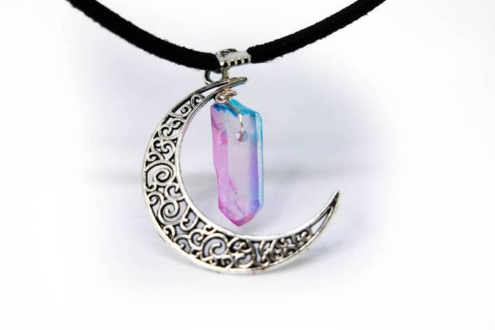 Denna blå spruckna glas/vulkanisk Lava Rock Sten Crystal mätning är ca. 8 mm. Paketet innehåller hängsmycke och kedja med vald längd. Valet av strängar är Crystal String (Clear Stretch), Flätad elastisk svart och flätad elastisk vit.