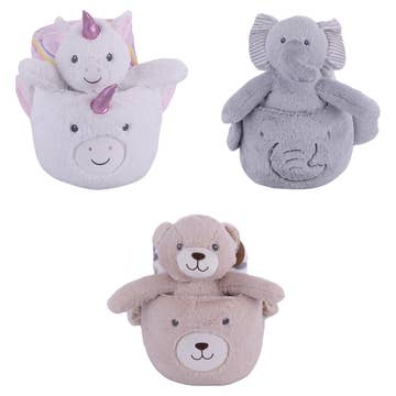 Vår Påskparadkorg är redo att fyllas med ägg, presenter och godsaker! Räv, kanin, katt och kyckling håller liljekonvaljer och blåklint. De är klädda i matchande blå shorts och rosetter. Följ den rosa knoppkanten längs korgen för att se lamm och rådjur prydda med band. Broderad på 100% filt. Remmen är av bomullscanvas. 7" × 7", med en 8" rem.