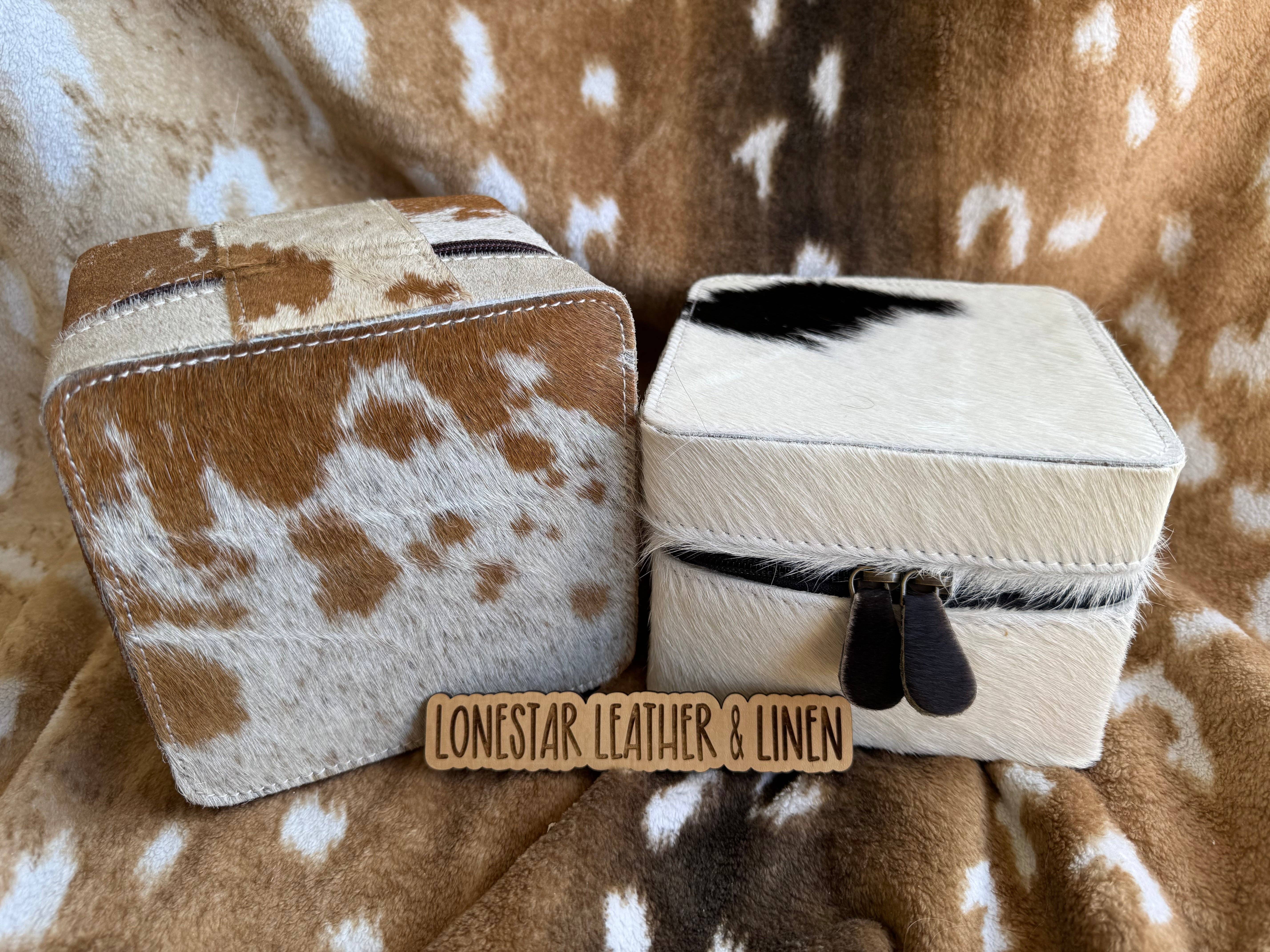 Tillverkade av äkta colombianskt kohud, dessa vackra präglade läder smyckeskrin är perfekta för att hålla dina värdefulla smycken organiserade och skyddade. Varje skrin är tillverkat av äkta läder och har unika kohudsmönster, vilket gör varje skrin verkligen unikt. Förvara dina smycken säkert och med stil med dessa högkvalitativa skrin.