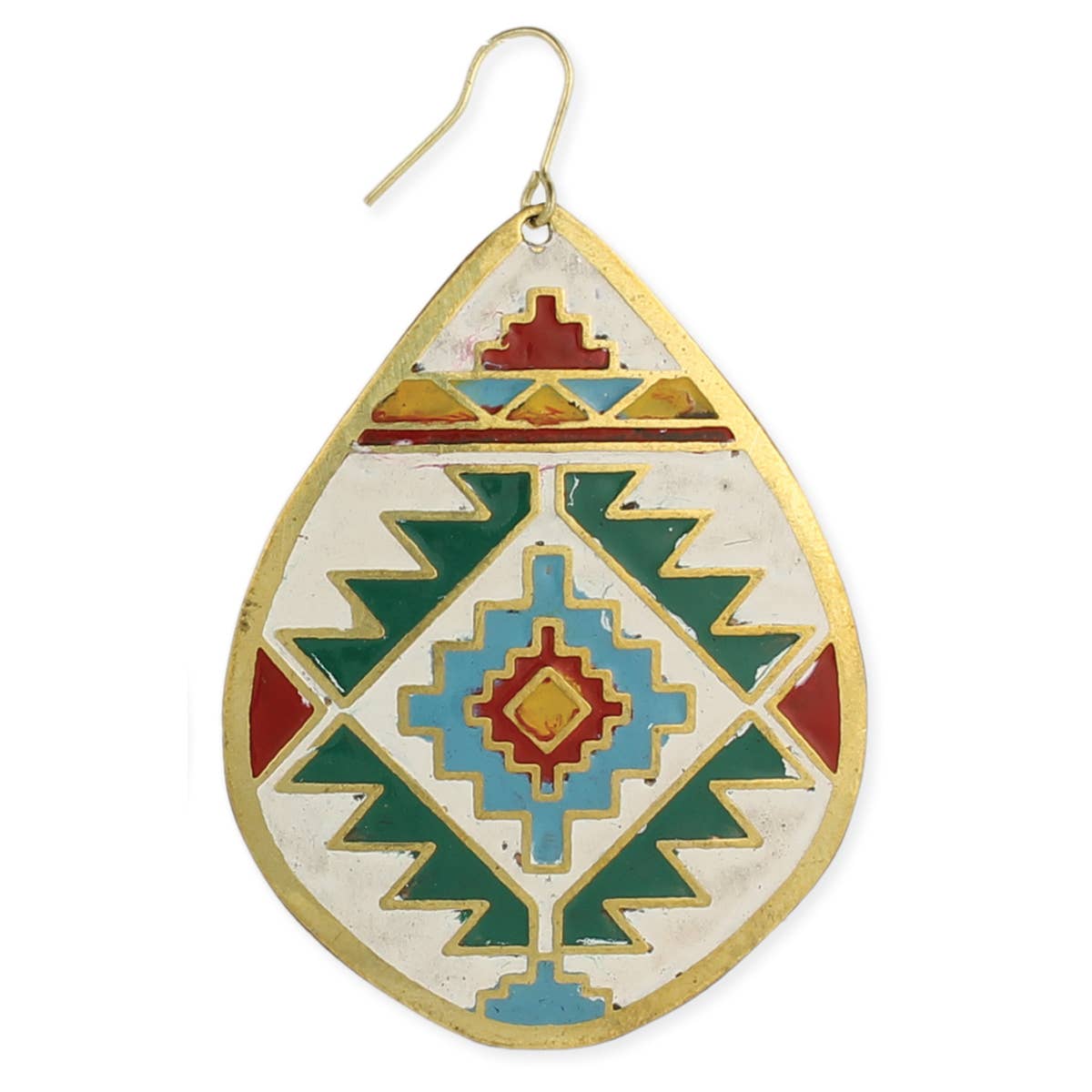 Gå globalt med dessa färgglada präglade örhängen som kunde ha kommit direkt från en marockansk marknadsplats. Emaljerad mandala design i halvcirkel hänger från hamrad guldtråd. En gammal värld ser i en modern miljö. Emaljdesign i blå/lila och orange/mint färgkombinationer. 1 3/8" x 2". Förpackningen med 6 levereras med 3 i varje färg. Guldplåten metallfinish. Örontråd i guld. Handgjord i Indien.