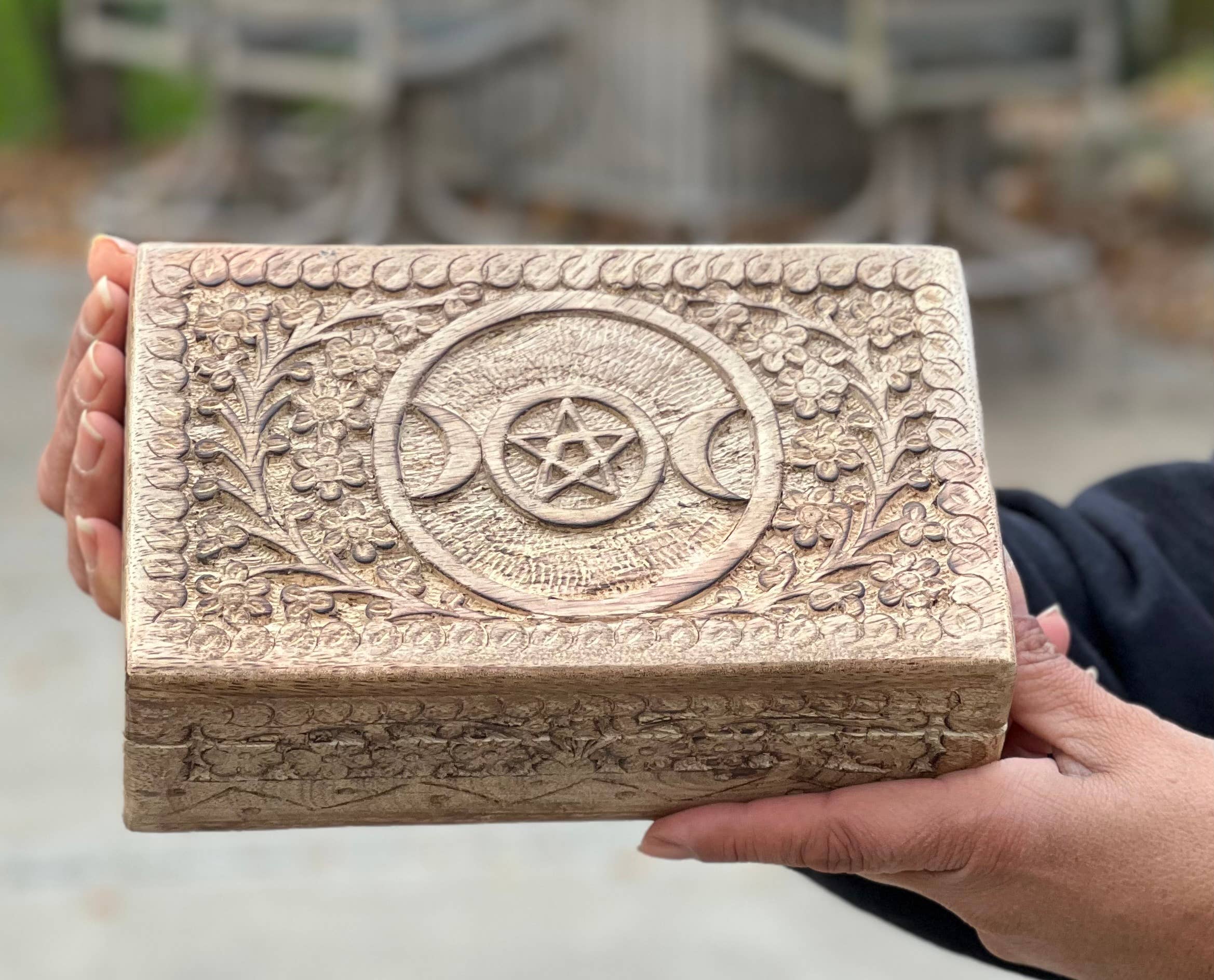 Handsnidade smycken prydnad minnessak trä förvaringslåda