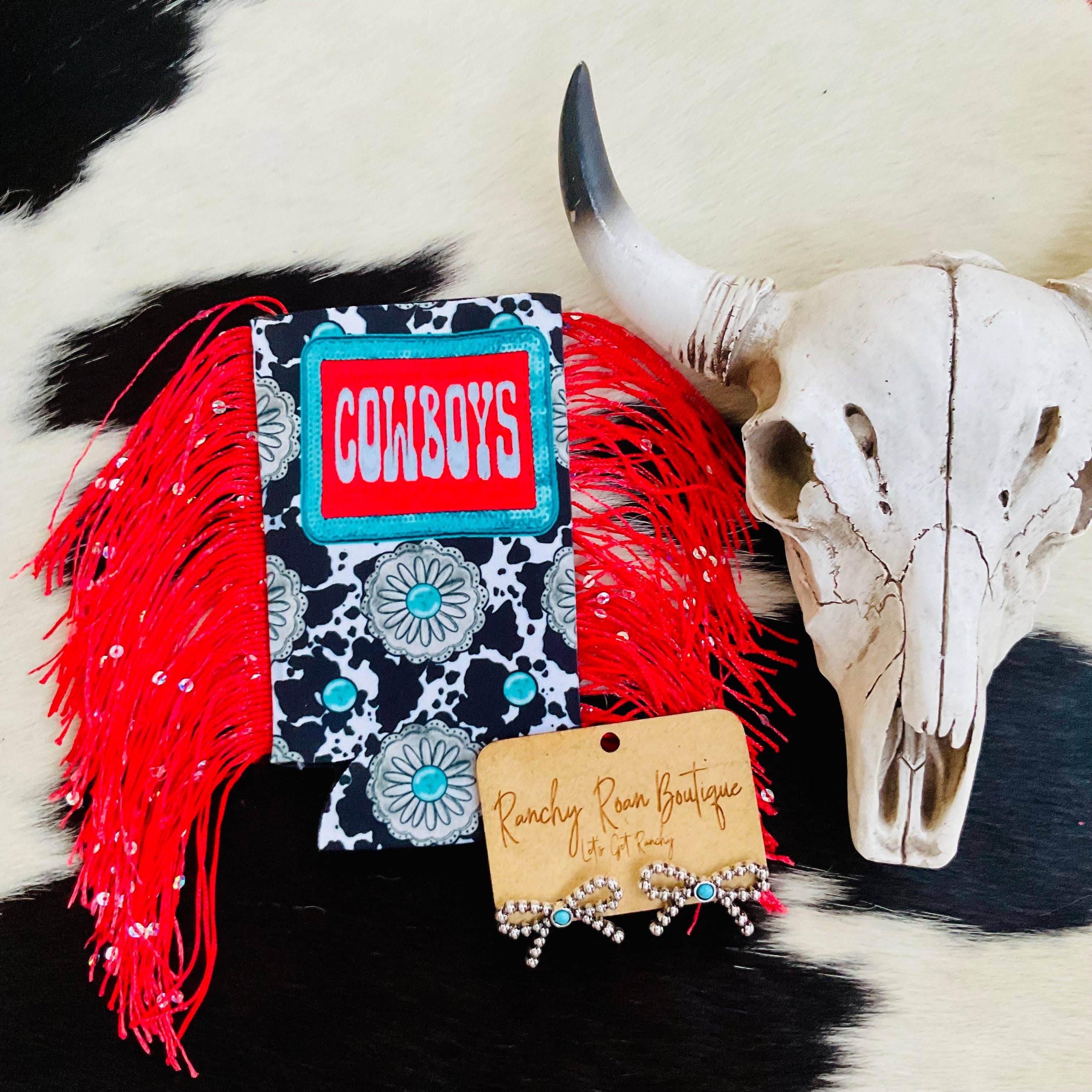 Turkos Concho Cow Print Smal Svart Frans Koozie
