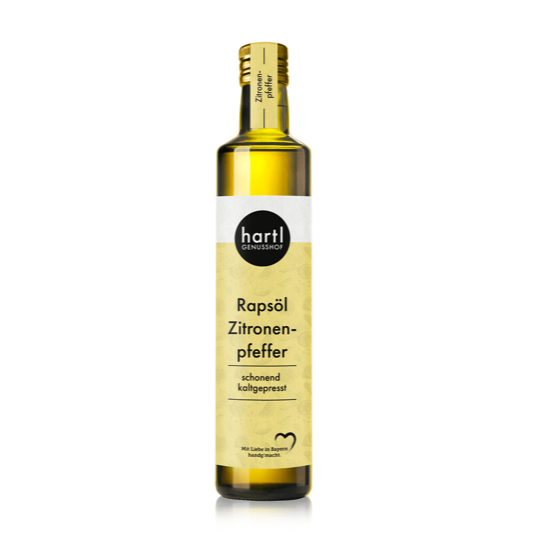 Vår naturliga, kallpressad rapsolja pressas för hand från våra egna gårdsfrön, som mognar i 11 månader utanför München och omsorgsfullt vårdas och skördas av oss. Vår rapsolja har en behagligt mjuk, nötaktig smak. Naturlig rapsolja är inte bara en blickfångare i ditt kök, utan en riktig behandling för kropp och själ. Naturligtvis: egna lokala frön kallpressad försiktigt och nyligen från bruket högt innehåll av omättade fettsyror rå livsmedelskvalitet Användning: helst kall mat, perfekt för sallader, dips och marinader; stek upp till 170° C