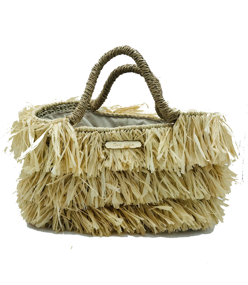 Exklusiv väska i återvunnen naturlig rafia som bekräftar Twenty Violets engagemang för miljön och hållbarhet. Egenskaper: * Material: Återvunnen naturlig rafia * 2 långa handtag * Foder med magnetlås * Cirka mått: 40 x 45 cm * Metallplatta med brandnamn * HANDGJORD PRODUKT – Tillverkad för hand, en och en.