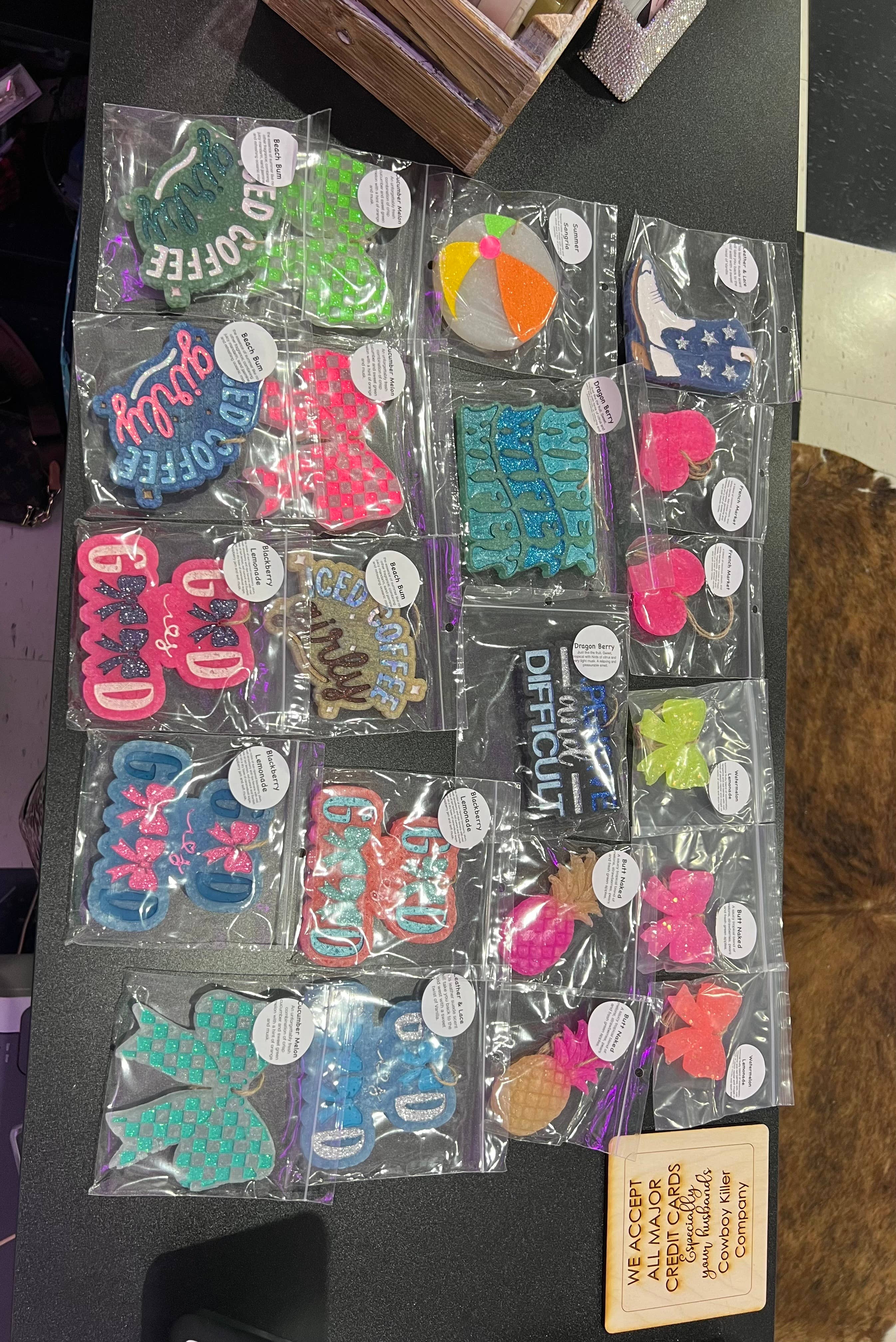 Herregud, ord kan inte beskriva hur förälskade vi är i dessa bilfräschare, det finns så många söta designer och dofterna är himmelska!!! De luktar alla för gott för att ha en favoritdoft! Bra jobbat Southern Creek Wholesale, dessa är verkligen de bästa bilfräschare vi har haft i butiken!! Vi kommer att beställa igen mycket snart!
