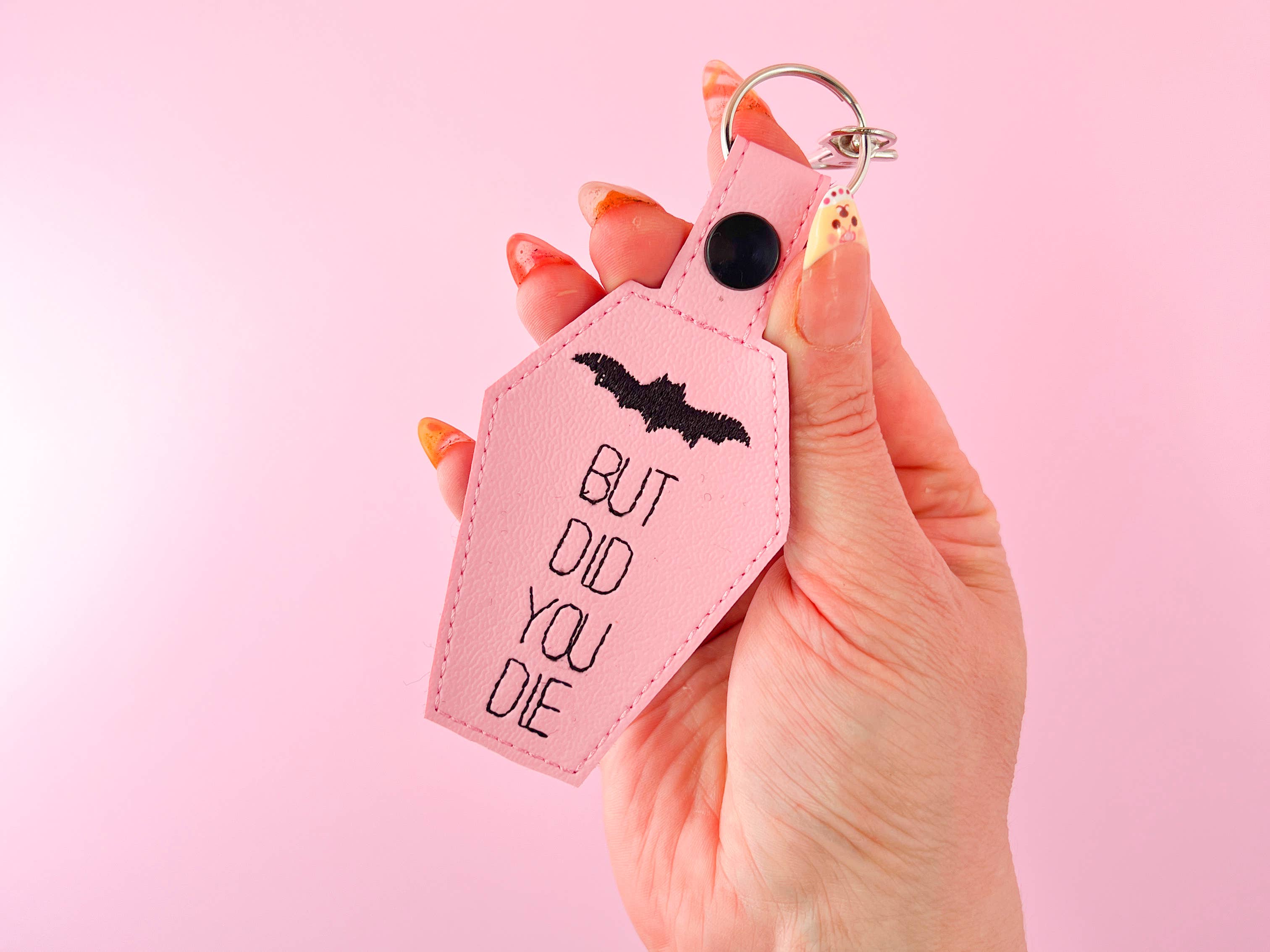 Lägg till en lekfull touch till dina accessoarer med denna bedårande rosa chibi-drake nyckelring! Tillverkad av mjukt, högkvalitativt minky-tyg, har denna lilla drake intrikata guld broderier på sina horn och magfjäll, vilket gör den till en riktigt magisk väska charm. Perfekt för att fästa på din handväska, ryggsäck eller nycklar, denna handgjorda kawaii-drake är den ultimata blandningen av söt och funktionell. Den guldfärgade nyckelringsringen säkerställer hållbarhet, så din drake kan följa med på alla dina äventyr. Oavsett om du är en drakälskare, en samlare av unika väskcharmar, eller letar efter en söt present, är denna plysch nyckelring det perfekta valet. Handgjord med omsorg i min studio, det är en förtrollande accessoar som är lika speciell som personen som bär den!