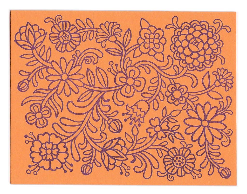 En botanisk gräns omger den snygga skripthälsningen på detta eleganta ”Tack ett Bunch” -kort, handtryckt i metalliskt bläck på en vintage press i Maine. Designen och silverbläcket på rikt grönt papper inspirerades av en eftermiddag som spenderade genom ett dammigt bibliotek av antika böcker, med sina dämpade färger och vackert präglade tygryggar. Varje kort har ett återvunnet brunt kuvert. Korten är tomma inuti. Standard A2-storlek, 5,5-tums bred x 4,25-tums hög.
