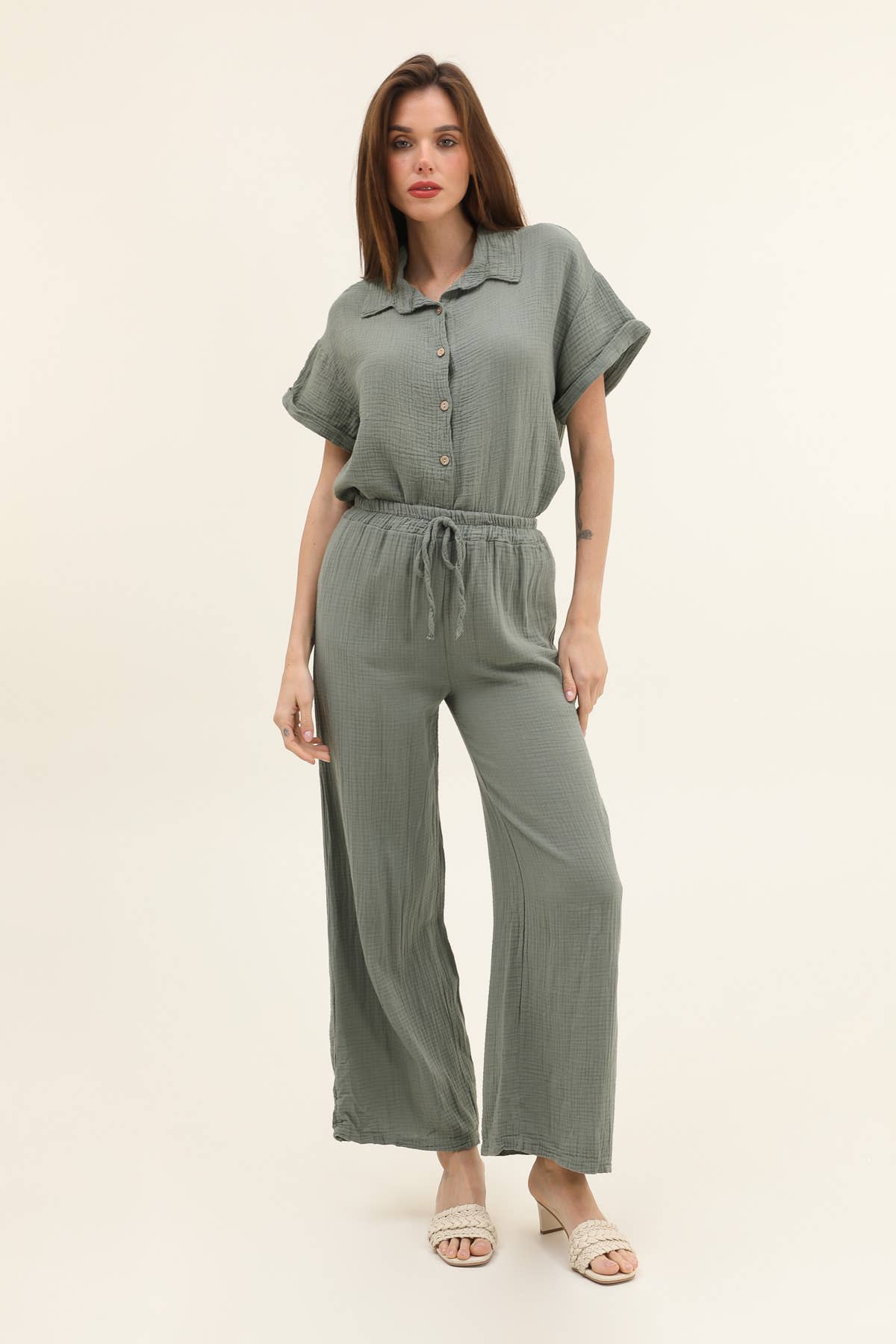 Randiga byxor i bomullsgauze