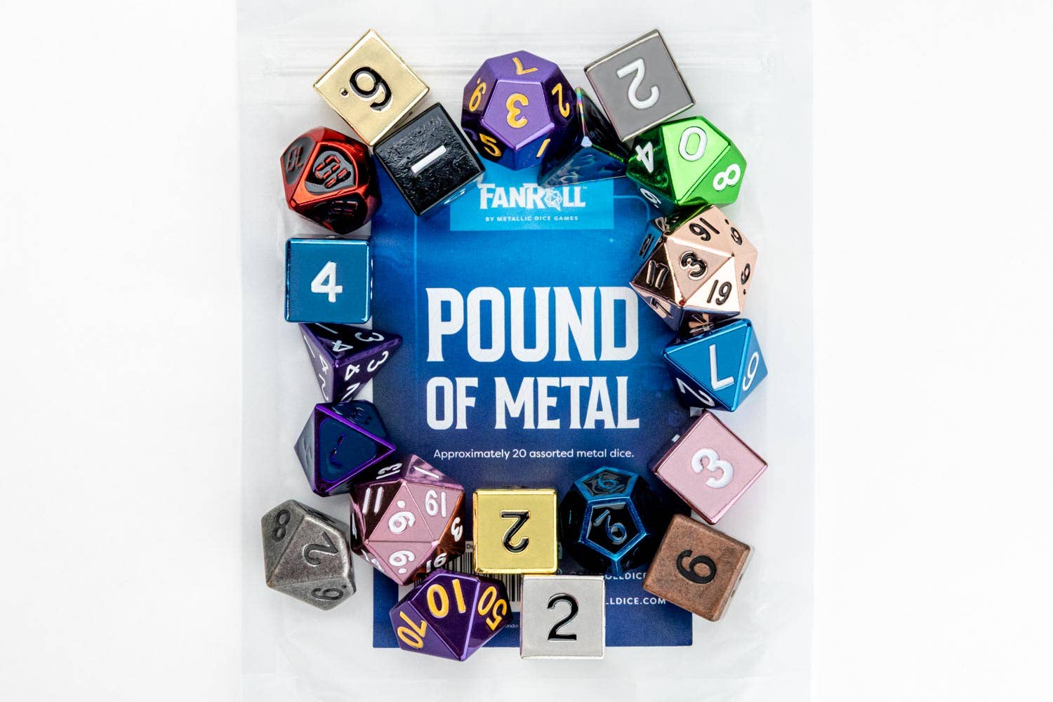 Våra Misfit Mini Metal-blindpåsar innehåller en slumpmässigt blandad polyuppsättning av solida mini-metalltärningar i varje påse!