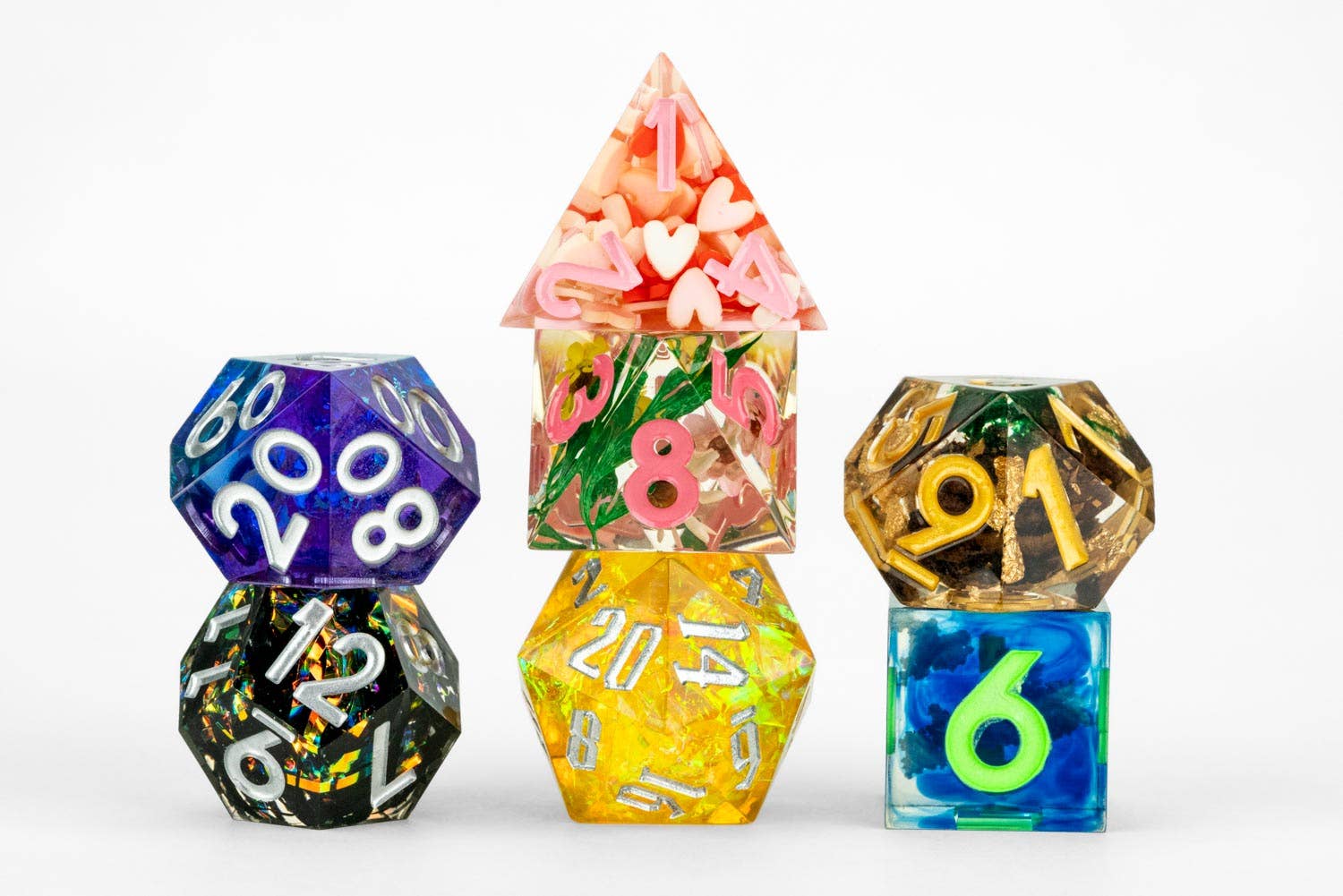 De små tärningarna är en stor succé i vår butik! De är en riktigt fin produkt i bra förpackning! Era D20-spinnare är också alltid fantastiska, allt är av hög kvalitet!
