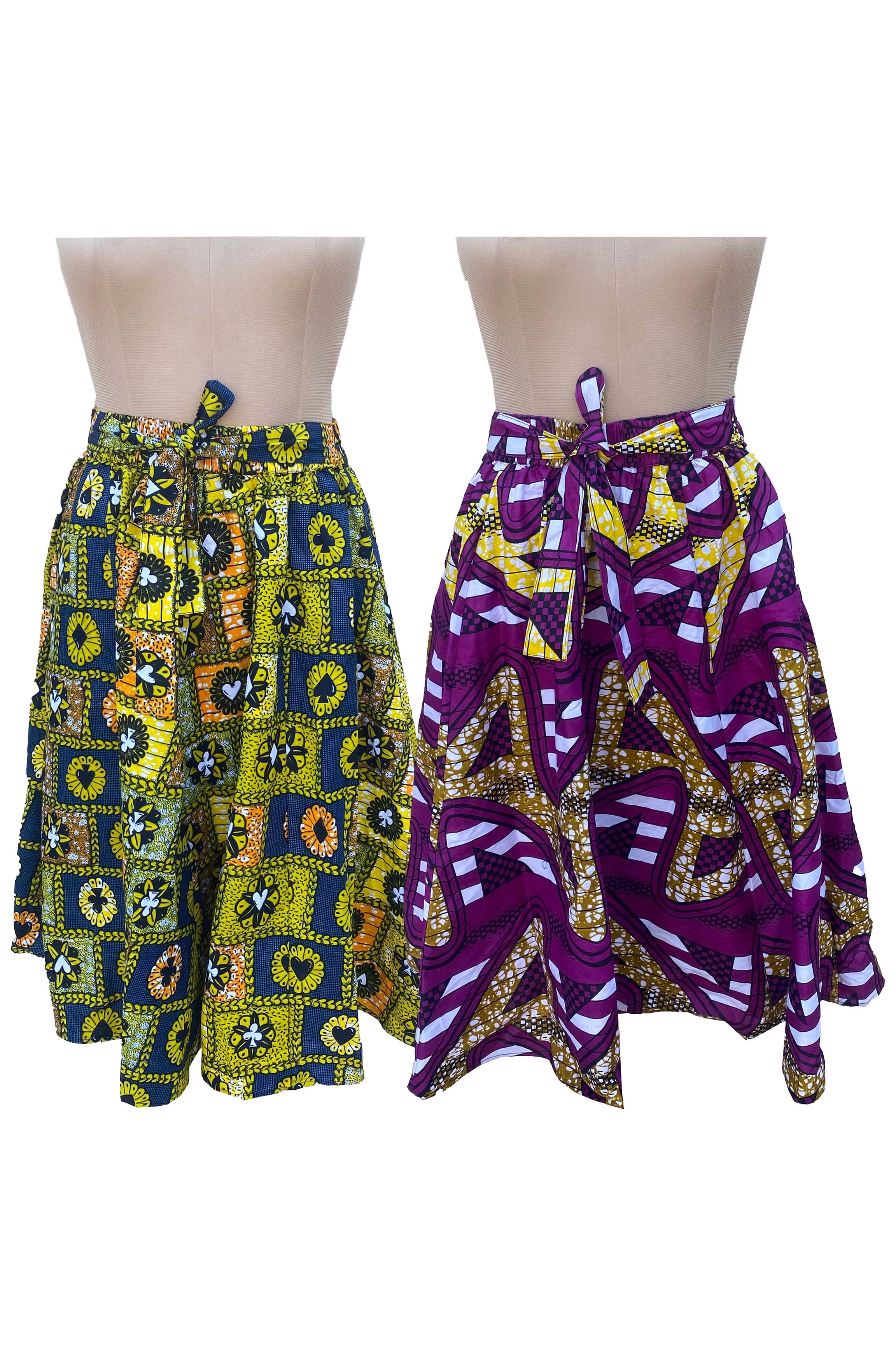 Upptäck skönheten i afrikansk kultur med denna fantastiska midi-/vadlängdskjol! Med en elastisk midjeband och 2 praktiska fickor för dina nödvändigheter är denna kjol både stilren och funktionell. Komplettera din look med det matchande huvudomslaget och omfamna rikedom och livfullhet i afrikansk mode. * Elastiskt midjeband * En storlek * Två praktiska fickor * Matchande huvudomslag * Leveranstid: 3-5 arbetsdagar * Fri frakt för beställningar över $150 * Vänligen scrolla ner för storlekstabell Färger kan variera något från bilderna. Kontrollera gärna plaggets mått innan beställning. Storlekstabell Längd – 30” Midja avslappnad elastisk - 28” Midja elastisk sträcker sig upp till – 52”
