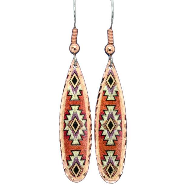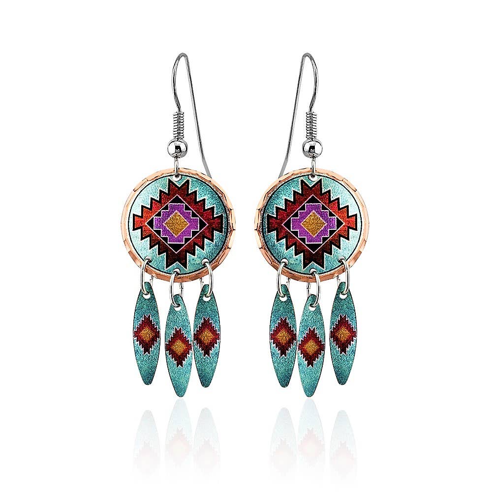 Färgglad Southwest Native-inspirerad design finns i livfulla färger för att skapa dessa fantastiska dinglande örhängen. Endast örontrådar i kirurgiskt stål används på alla våra handgjorda örhängen.