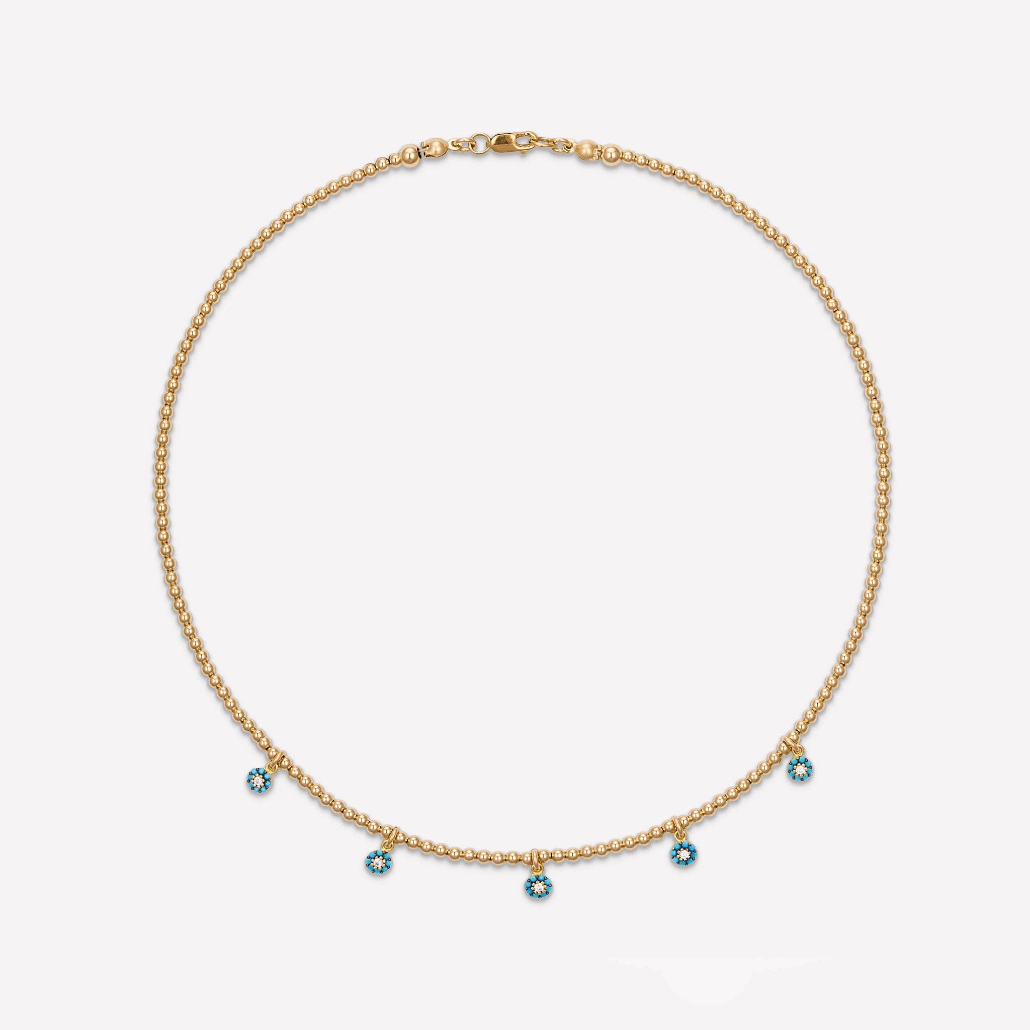 4MM 14KT gult guld pärlhalsband med 5 Cubic Zirconia Hängande Hamsa berlocker. Kombinera det med Dog Tag Pendant Halsband för att slutföra utseendet som visas på bilden. Hamsa Charms: Bjud in skydd och positivitet i ditt liv med Hamsa handberlocker. Med sitt uråldriga ursprung rotat i olika kulturer är Hamsa en symbol för välsignelser och skydd mot negativa energier. Smycka ditt halsband med dessa berlocker för en elegant blandning av tradition och mode.