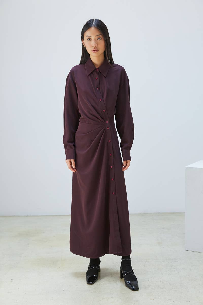 Lång skjortklänning. Klänningen finns i 3 storlekar: S, M, L. Sammansättning: 100% Polyester