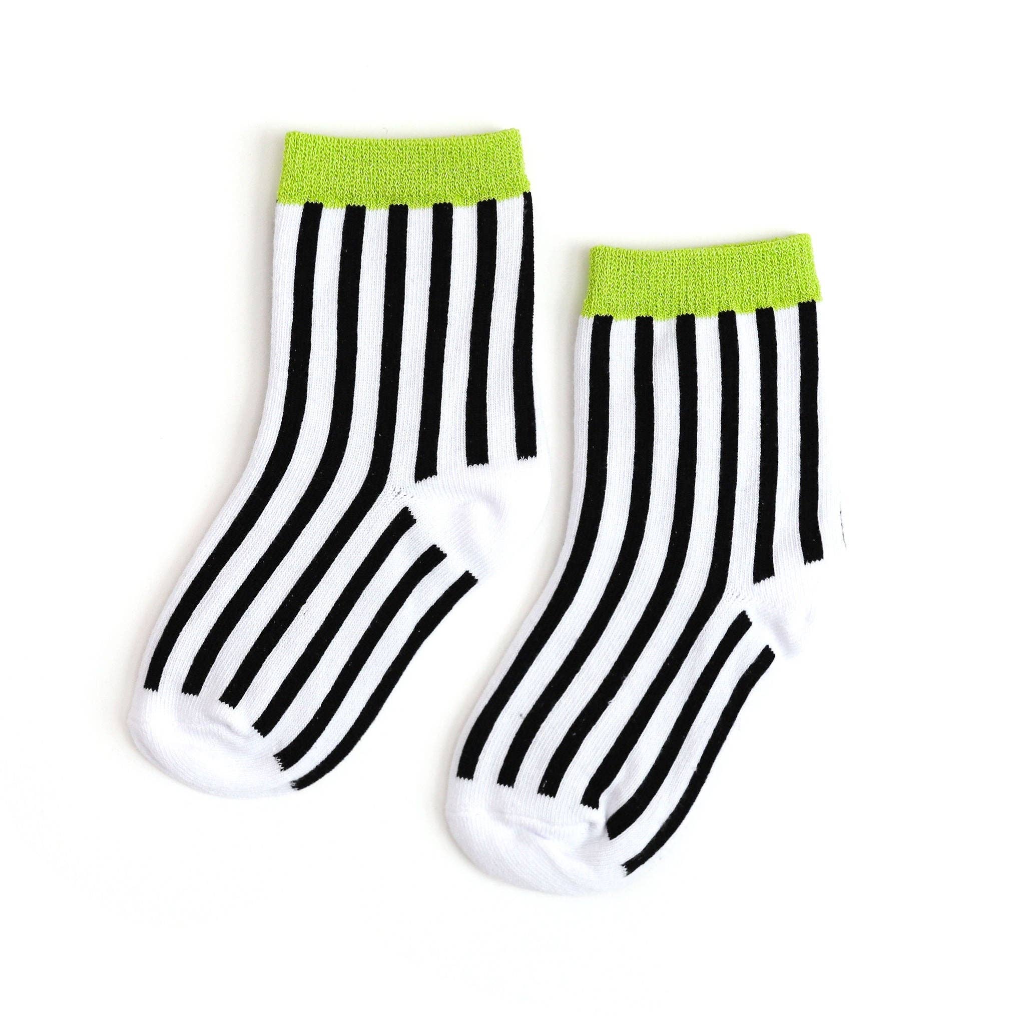 Vertikala Randiga Spetstoppar Knähöga Strumpor - Svart/Vit