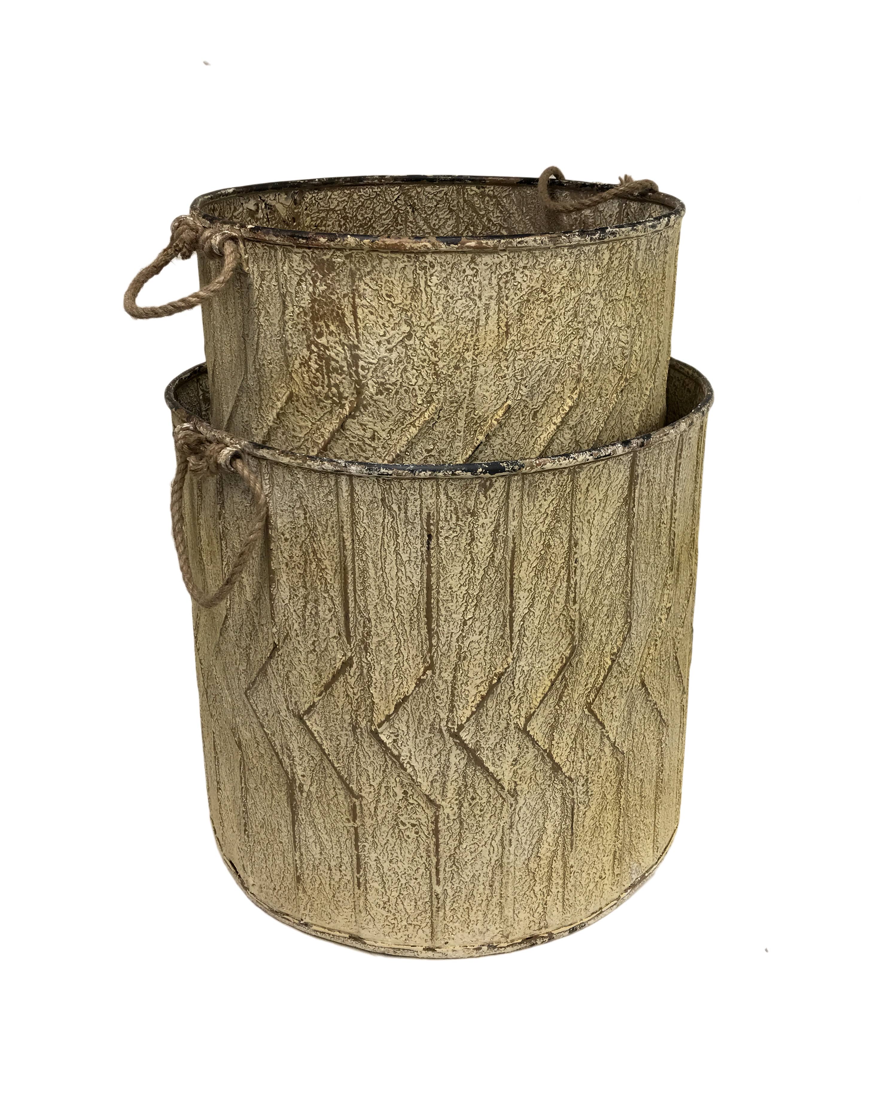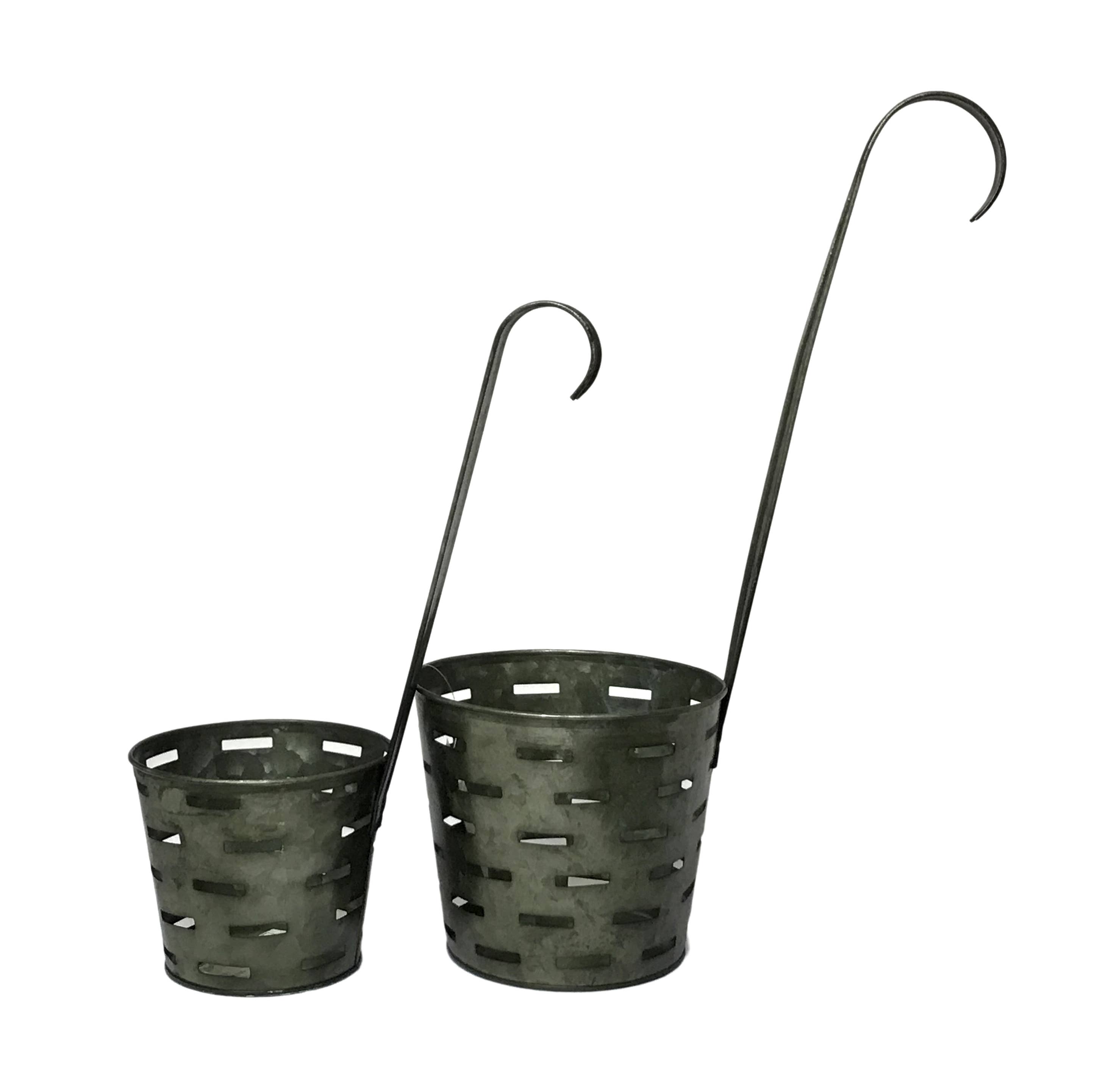 Vi presenterar vår uppsättning med 2 planteringskärl för olivolja i grafit, perfekt för att lägga till en touch av elegans till din trädgård eller inomhusutrymme. Tillverkade av tung galvaniserad metall med en mörkgrå grafitpatinfinish, dessa planteringskärl är både hållbara och visuellt tilltalande. Den större kannan mäter 16x8x9h, medan den mindre mäter 11x5.25x4.75"h, vilket gör dem lämpliga för att hålla standard 6" och 5" odlarkrukor som vanligtvis finns i plantskolor. Varje kanna har ett robust sidohandtag för enkel transport och omarrangemang. Höj din trädgårdsupplevelse med dessa snygga och funktionella planteringskärl.