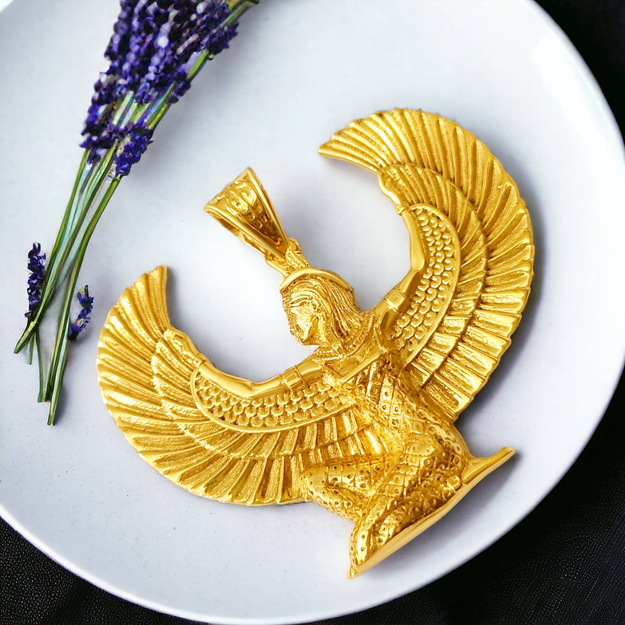Material: 14K guldfylld över mässing, denna bit är robust, lätt att rengöra och byggd för att hålla med en tidlös, vintageinspirerad finish. Historia: Inspirerad av forntida egyptisk kultur, särskilt dyrkan av gudinnan Sekhmet. Andligt: Representerar styrka, kraft och skydd och förkroppsligar Sekhmets egenskaper. Talisman: Troddes avvärja negativitet och erbjuda vägledning i utmanande tider. Handgjord: Tillverkad med omsorg och uppmärksamhet på detaljer, varje bit är unik. Healing: Tänkte ge balans och harmoni i bärarens liv. Symbolik: Sekhmet, en gudinna med lejoninna, symboliserar hårt skydd och gudomlig styrka. Hur man bär: Lämplig för alla tillfällen, kan bäras dagligen eller för speciella evenemang. Passar alla kedjor: Med en diameter på upp till 5 mm kan den enkelt kopplas ihop med olika kedjor. Guldgudinnan Sekhmet hänge halsband: Perfekt som en meningsfull gåva för både män och kvinnor, firar egyptiskt arv och andlighet.