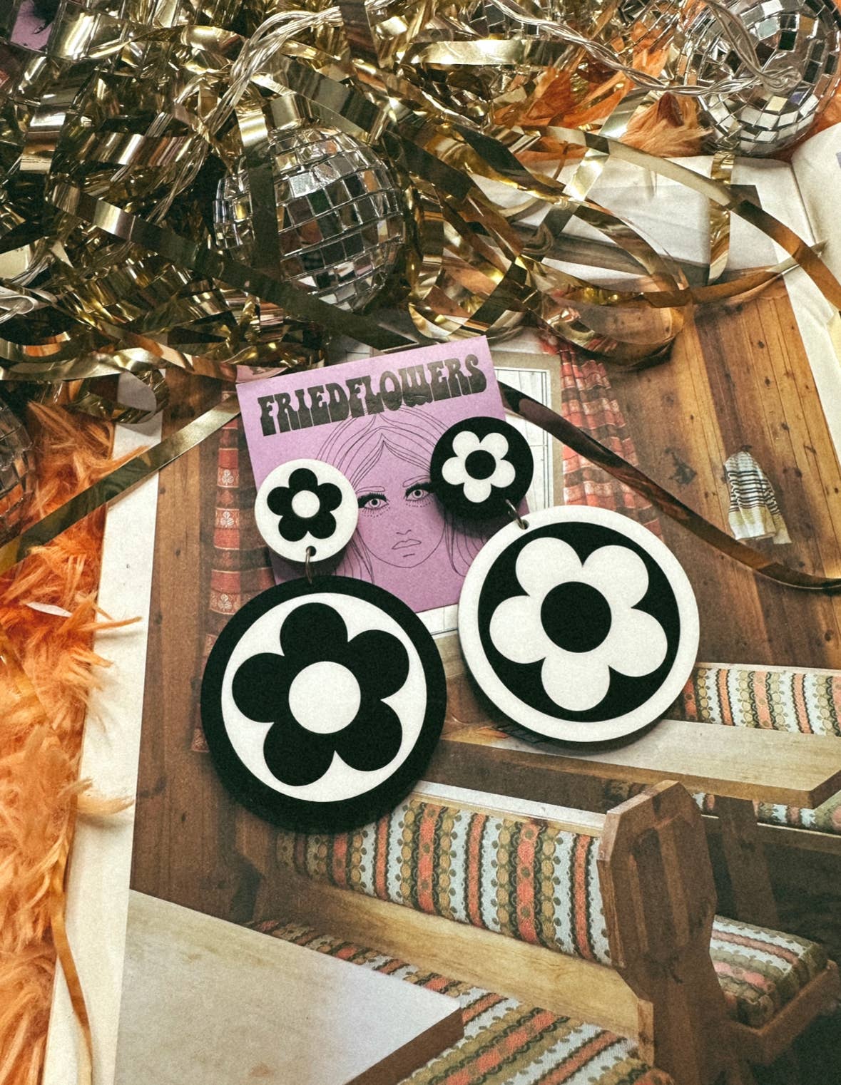 Direkt från 60- och 70-talet är vi helt överlyckliga över urvalet av örhängen från Fried Flowers som vi valde. Djärva och vackert gjorda! Glada över att ha dem i lager och ser fram emot ett underbart pågående stöd för varandras företag.