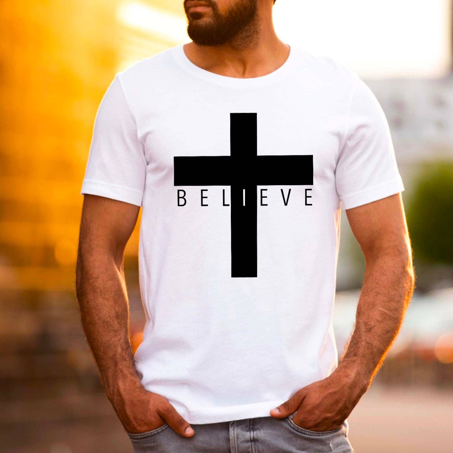 SKU: DTG_White_S_ShortSleeve_Front_I Believe Cross Vikt: 170,1 g (6 oz)