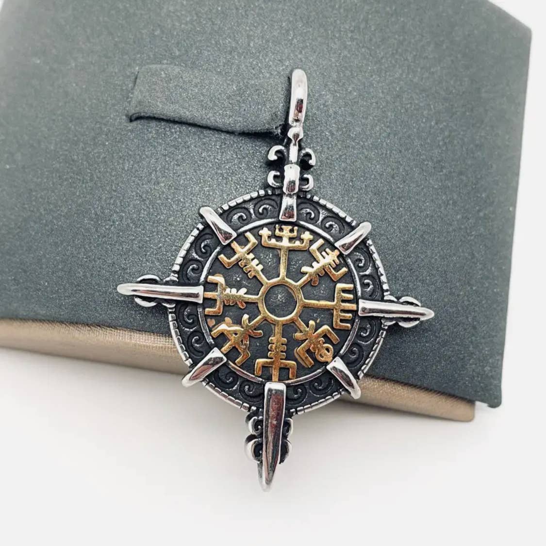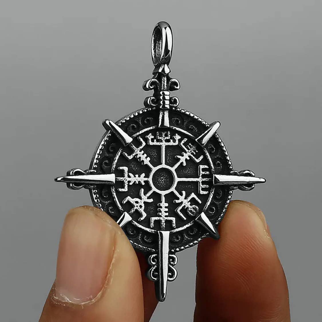 Viking Compass Arrow Valknut Charm i rostfritt stål - MJ/MN