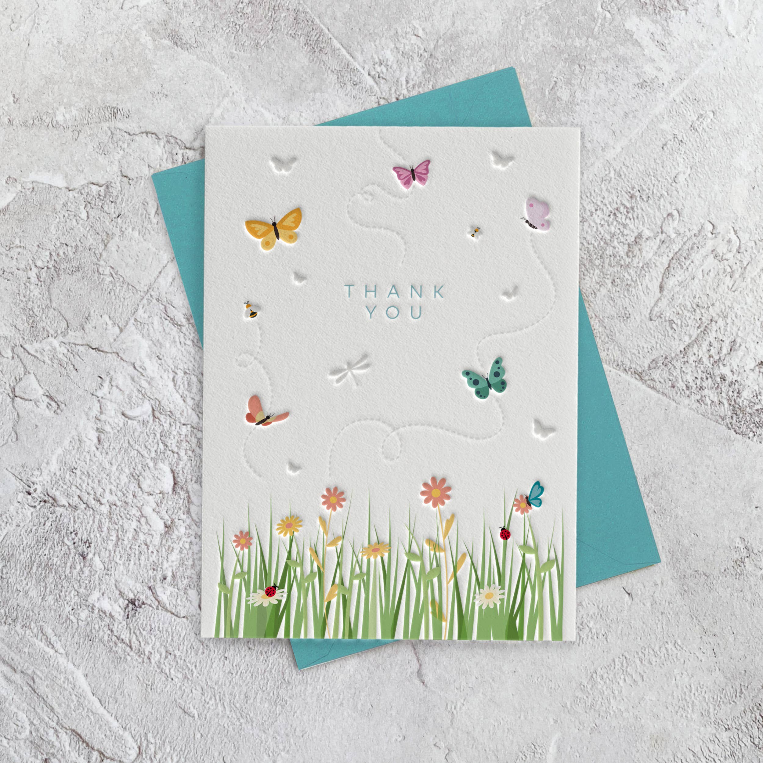 Gratulationskortets titel: ”Bon Voyage” Storlek: 170 x 122 mm (passar en standard brittisk brevstorlek). Färdig i en vackert präglad bokstavspressad stil på tjock 350gsm 100% återvunnen kartong. Designad och tryckt i Storbritannien från hållbara källor och/eller med återvunnet material. Levereras med kuvert tillverkat av återvunnet eller hållbart framställt FSC-material. Lämna tomt inuti för ditt eget meddelande. Kortet levereras ”naket”, korten är inte cellopåsade.