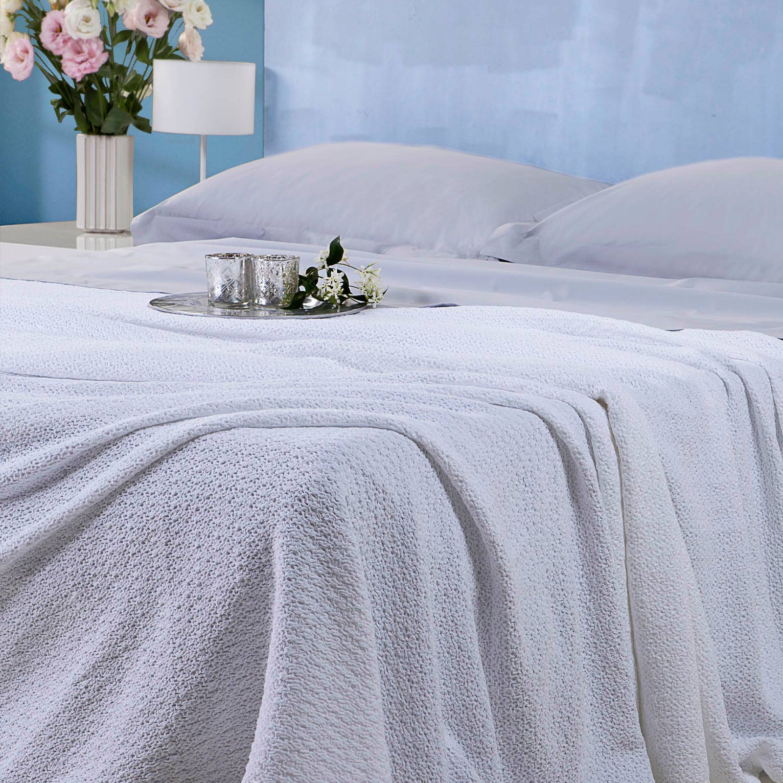Våra filtar och plädar är gjorda av enkla, ojämna saker - av bomull och vänlighet, av den långsamma, stadiga rytmen av händer och fötter som sträcker sig över de stora handgjorda vävstolarna, av ofullkomlighet och tystnad, av färgämnen skapade på plats, det färgade garnet torkar under solen på linjer strax bortom vävstolarna, av familj och uppriktighet, av traditioner ödmjuka och obrutna. Med tiden blir de mjuka och smidiga, tröstande och skonsamma. En skönhet född av äkthet och processens vitalitet. Våra filtar är gjorda för att leva, avsedda att användas, att växa med dig, dess karaktär förändras över tiden tyst i bakgrunden av din vackra historia. Eftersom varje filt är handgjord kan små variationer i utseende och färg förekomma, vilket gör var och en unik. Drottning: 90 ”x 94" Kung: 108 ”x 94" 100% bomull. Handgjord i Paraguay.