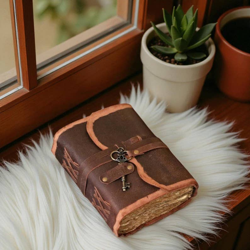 Handgjord läderdagbok med nyckel: Rustik resedagbok med rivna kanter