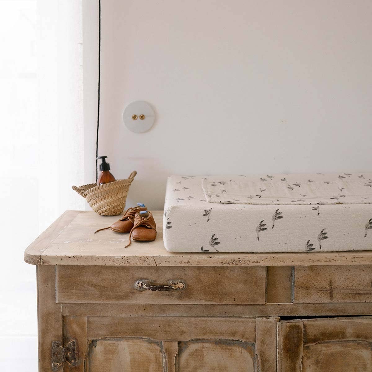 Våra Changing Pad Cover/Liggdelsark består av ett lätt, mjukt och andningsbart tyg. Skräddarsydd för att passa tätt på vanliga liggdelmadrasser och co-sliprar. Bebisar älskar våra liggdelsark, eftersom de erbjuder en mjuk, välkomnande konsistens som lugnar dem i vilsam sömn. Söta drömmar för alla. Storlek: Passar vanliga liggdelsmadrasser och co-sliprar samt Byte Pad-mattor Material: 100% naturlig bambu muslin