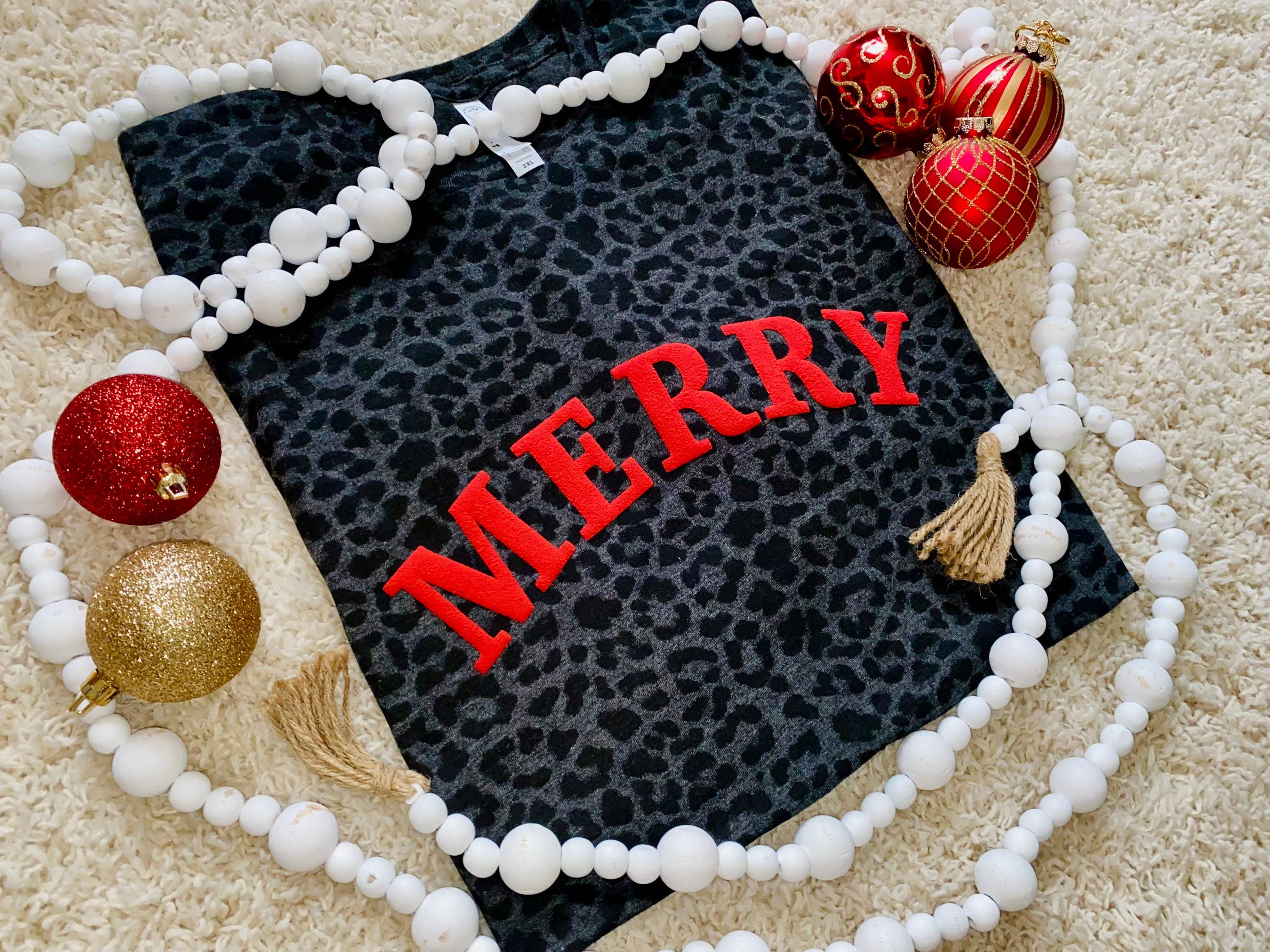 Vi presenterar Davis Designs Merry Christmas svart leopard T-shirt. Denna unisex T-shirt, prydd med ett slående puffvinyltryck, visar vårt engagemang för anpassad grafisk design. Det är inte bara en skjorta, det är ett bevis på vår tillväxt som ett litet företag under de senaste 3 åren. Denna screentryckta T-shirt för kvinnor från Davis Designs är ett unikt plagg som speglar vår resa och vårt engagemang för kvalitet.