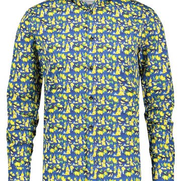 Kortärmad knapp upp med en dold knappslå, kontrasterande asymmetriska manschetter på ärmen och stående hakkrage. Tvätta kallt, torktumla lågt, kan använda högt järn.
