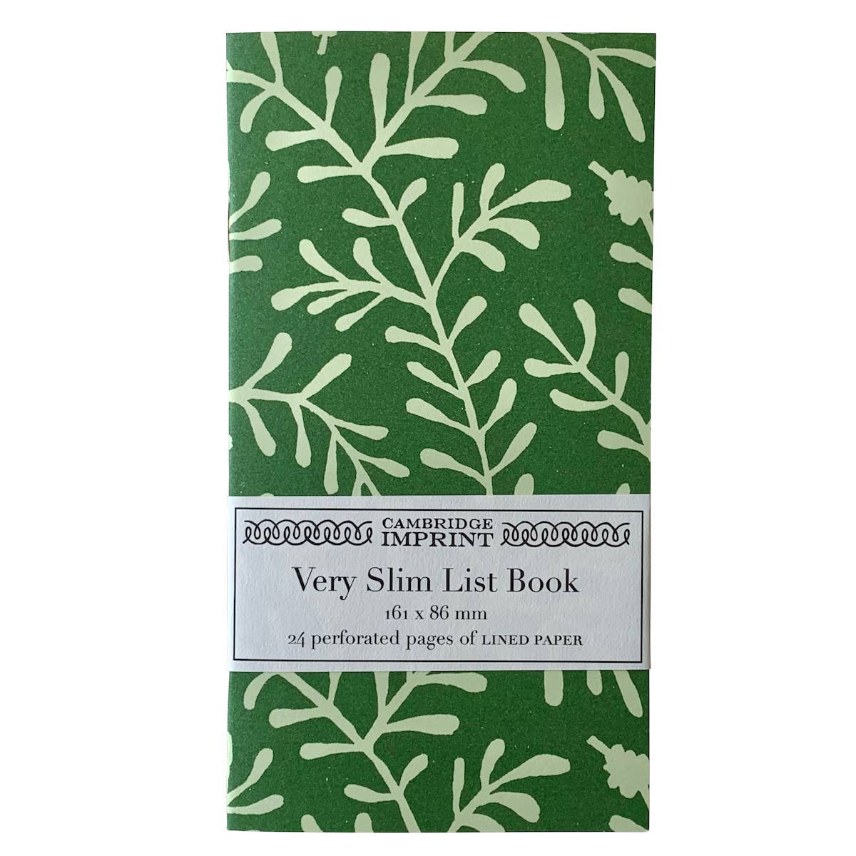 Vår Very Slim List Book är så lätt att du inte vet att du bär den. En praktisk storlek för att stoppa i väskan, för anteckningar eller göra listor. 24 sidor av elfenbenspapper av god kvalitet med en elegant smal linje, med perforeringar så att sidan lätt kan rivas ut. Omslagen av slät krämpapper är litotryckta med vackra färger handblandade enligt våra specifikationer. Designen löper över fram- och bakstycket utan märkning eller noggrann märkning. Det finns en enkel Cambridge Imprint-stämpel på insidan av baksidan.