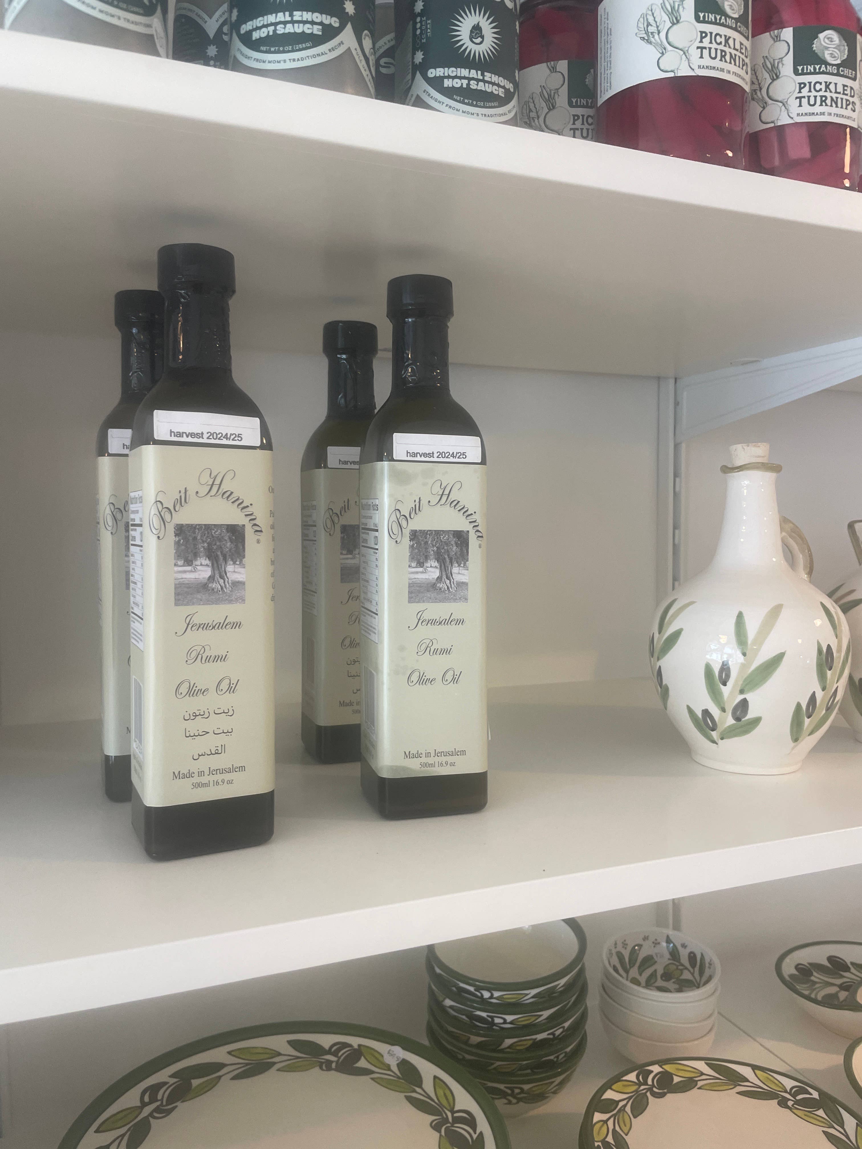 Rumi extra virgin olivolja från Palestina, rå och ofiltrerad, med kraftfull och pepprig smak. En fyllig olivolja rik på smak som passar utmärkt till za’atar. Bäst för doppning, sallader och dressingar.