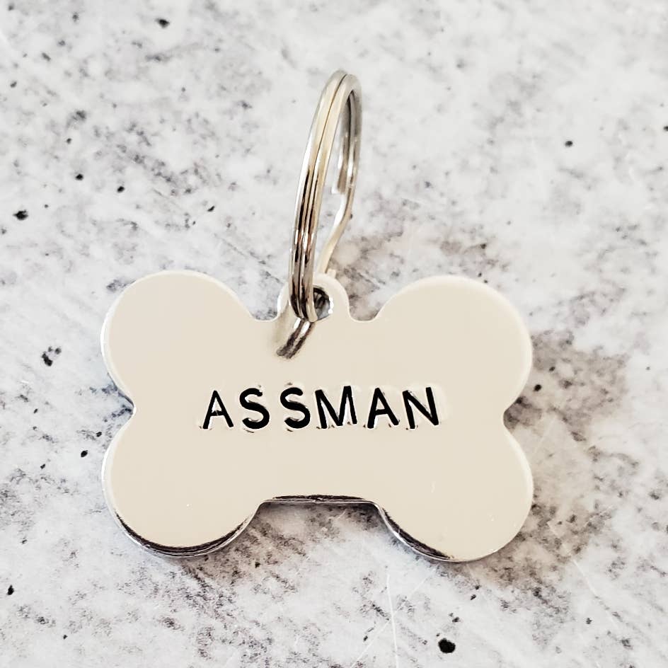 Detta är en fantastisk benformad djurtagg handstämplad med texten ”CUDDLY AF”. Den levereras i silver aluminium, gul mässing, roséguld rostfritt stål och regnbågsrostfritt stål. OM OBJEKTET • Hundbenet mäter 1 ”x 1,5” och är tjock men lätt metall fäst vid en delad ring av rostfritt stål. • Du kan välja mellan silver aluminium, gul mässing, roséguld rostfritt stål och regnbågsrostfritt stål. Bilderna av de senare tre variationerna är som referens. • Du kan välja att ersätta den ovan nämnda texten med din egen text mot en extra kostnad. • Det veganska bläcket som används för att mörka bokstäverna är semi-permanent. • Varje bokstav är handstämplad individuellt. • Varje ID-tagg är handgjord för att beställa åt dig och var och en är lite annorlunda på grund av handstämplingens natur. SKÖTSELRÅD • Det veganska bläcket kommer att blekna över tiden. • Den gula mässing oxiderar. • Att hålla dina stämplade metaller borta från vatten hjälper till att förlänga livslängden på metall och bläck.