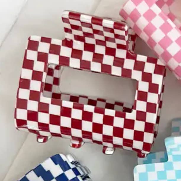 Vi presenterar vår mångsidiga och trendiga 4 ”rektangulära rutiga hårklämma, det perfekta tillbehöret för att lägga till en touch av elegans och stil till dina frisyrer. Dessa snygga hårklämmor kombinerar mode och funktion för att hjälpa dig att skapa fantastiska utseende utan problem. STORLEK: 4 X 2 ”